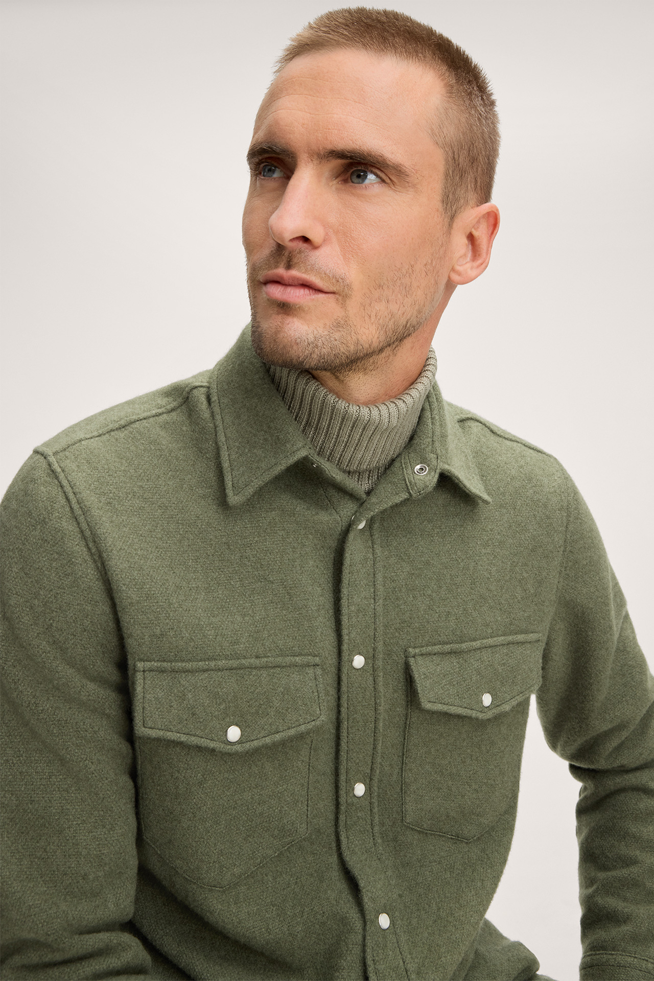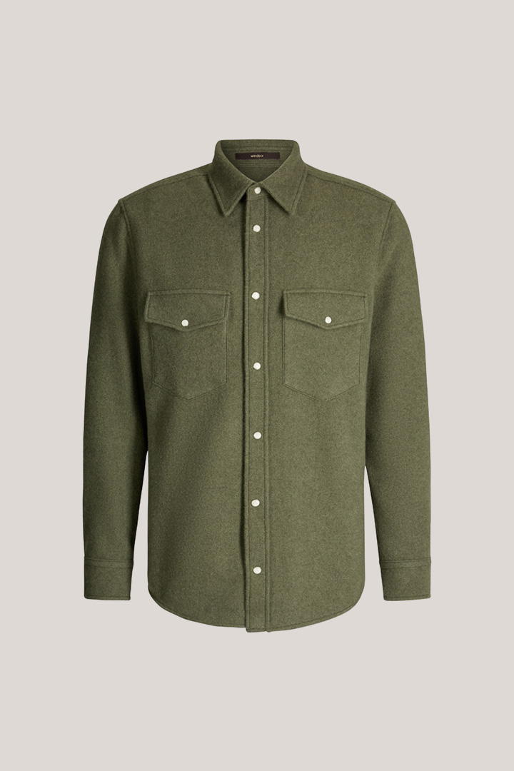 windsor. präsentiert das Produkt Overshirt Ozzano aus Baby Cashmere in Oliv aus der Kategorie Hemden