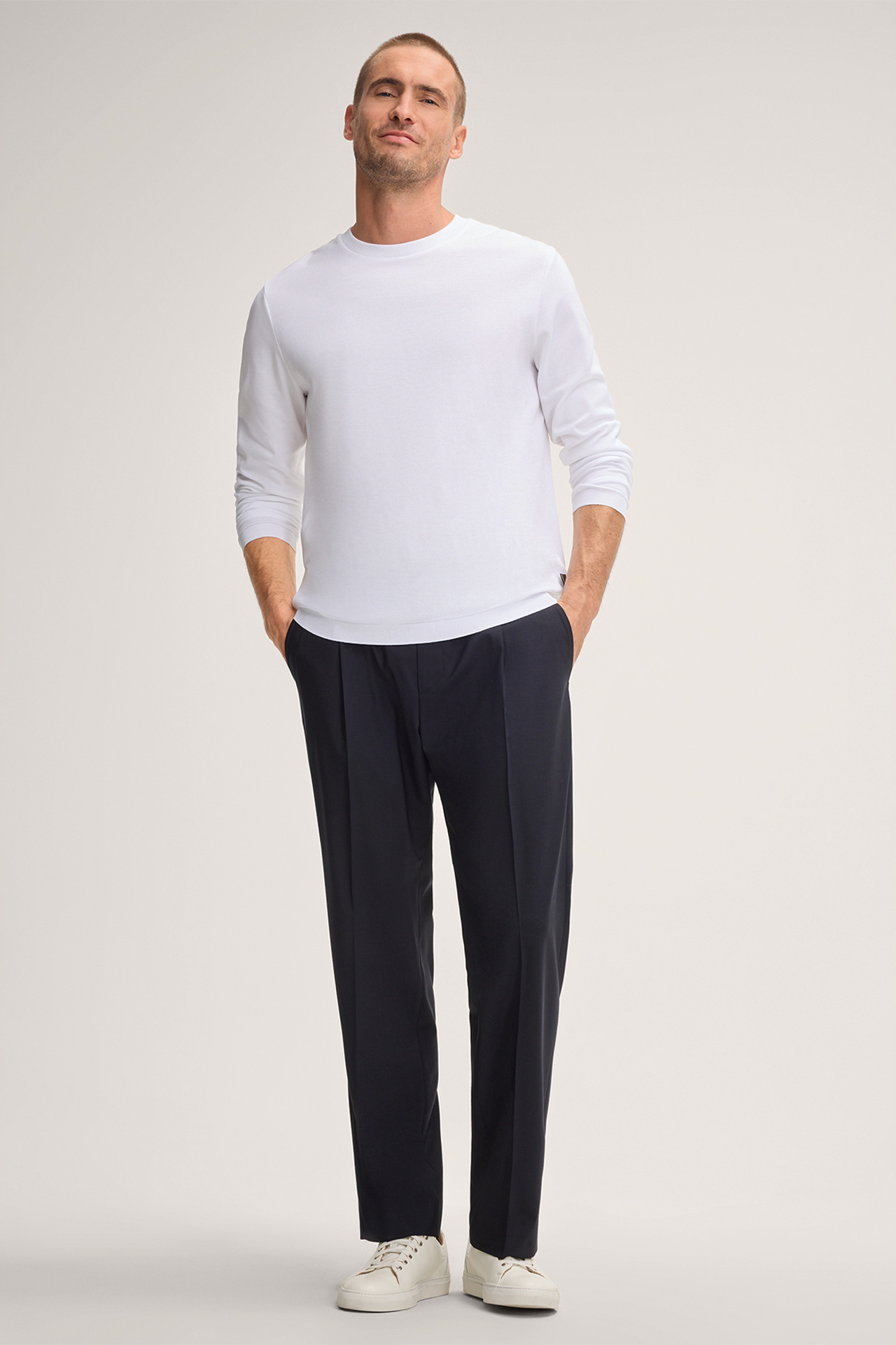 Als komfortabler Allrounder erweist sich das Longsleeve Frido aus reiner Baumwolle. Ein klassischer Rundhalsausschnitt und doppelt vernähte Abschlüsse runden den Look stimmig ab.