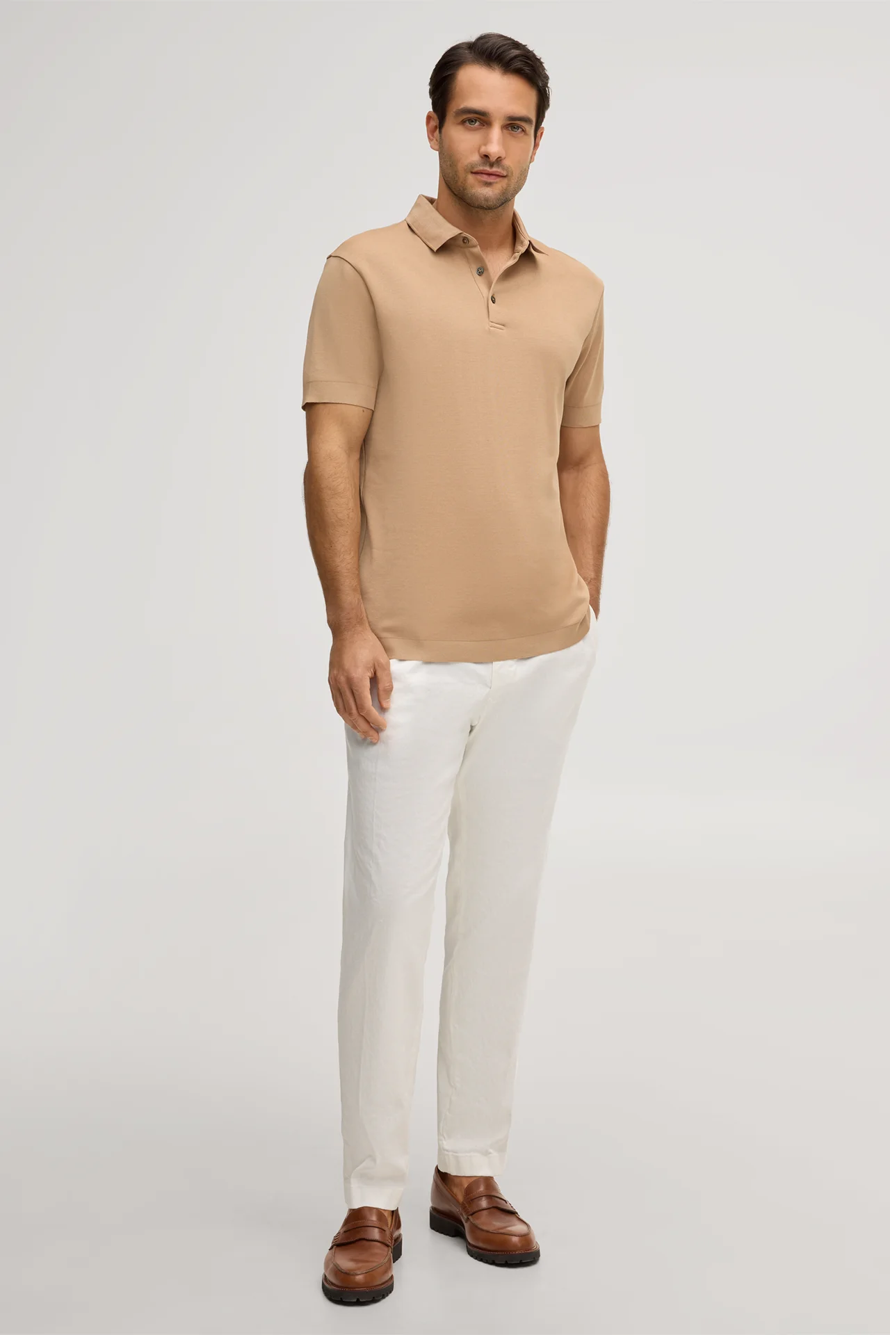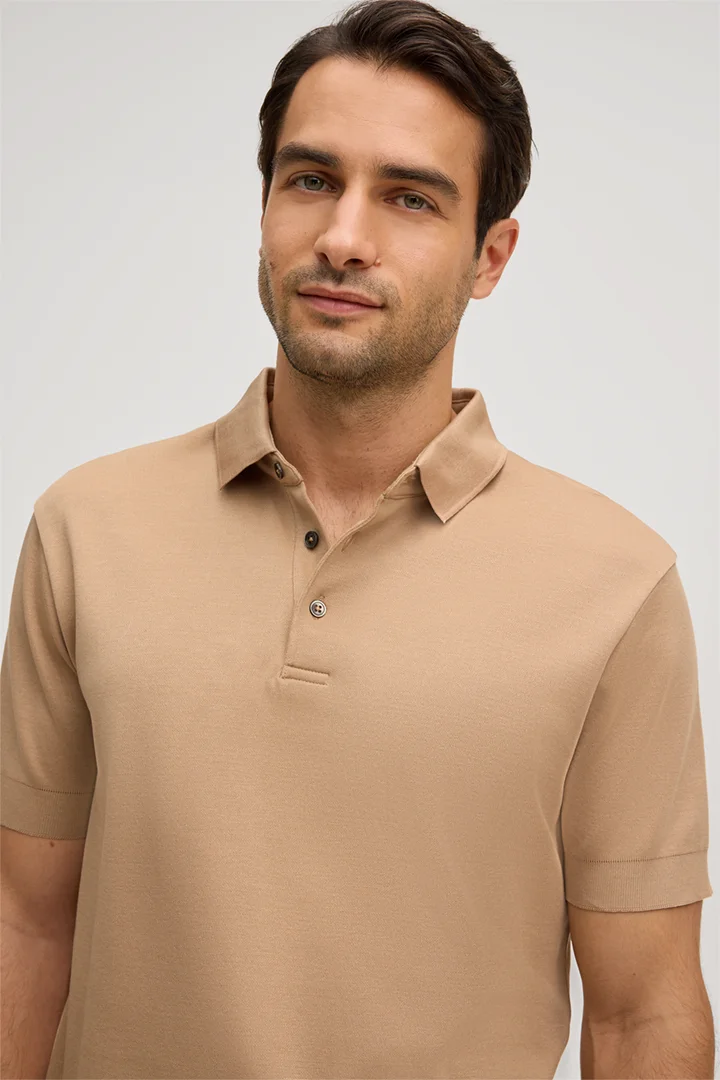 Baumwoll-Polo Floro in Camel