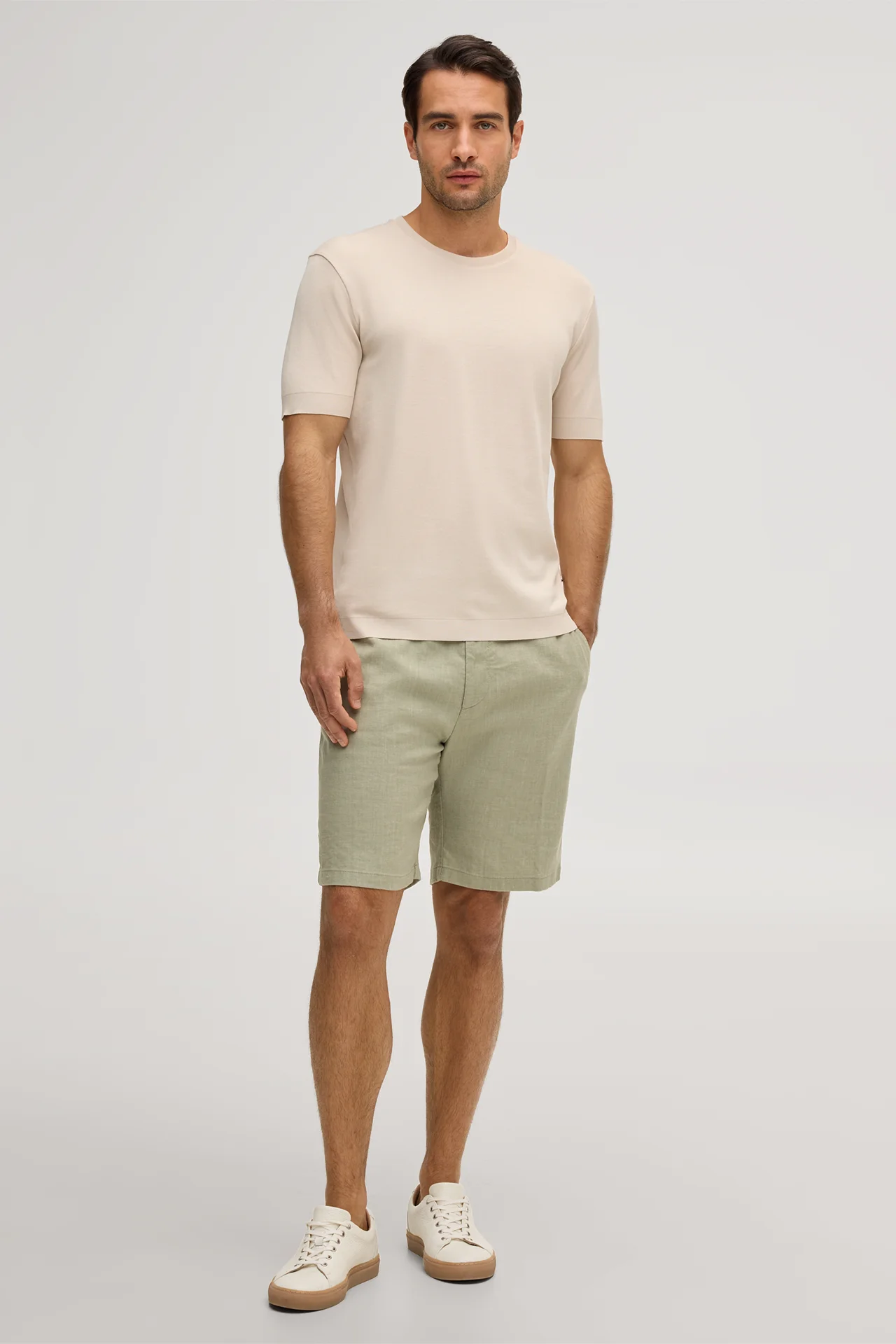 Das Model trägt die Größe M, bei einer Körpergröße von 178 cm, einem Brustumfang von 98 cm und einem Hüftumfang von 98 cm.