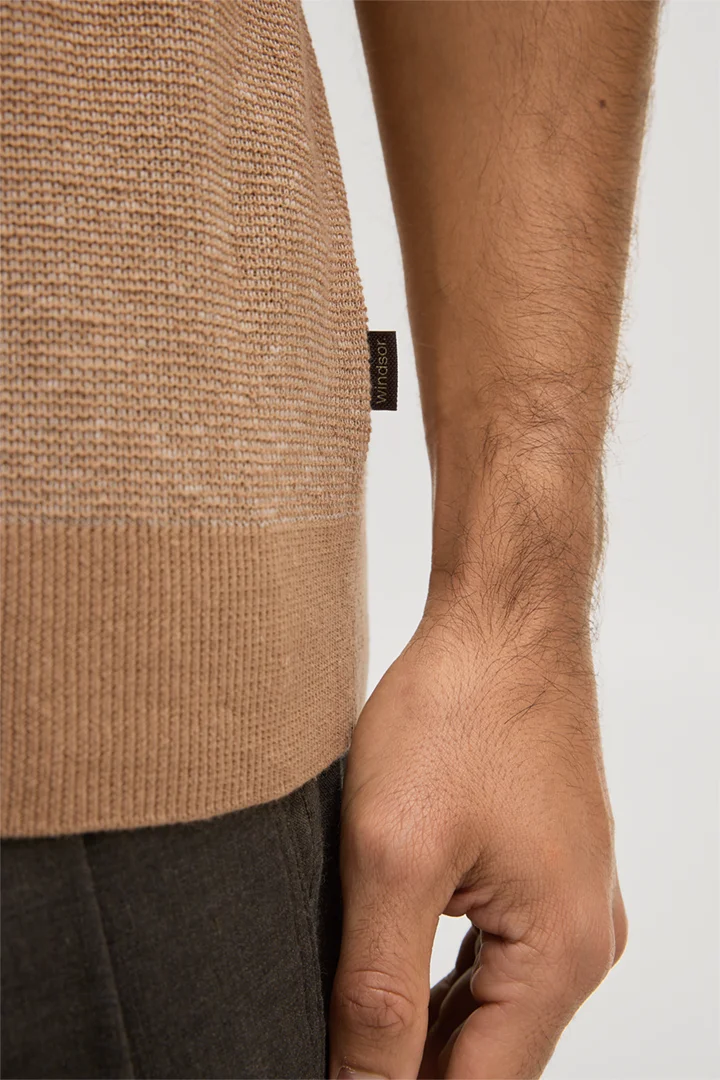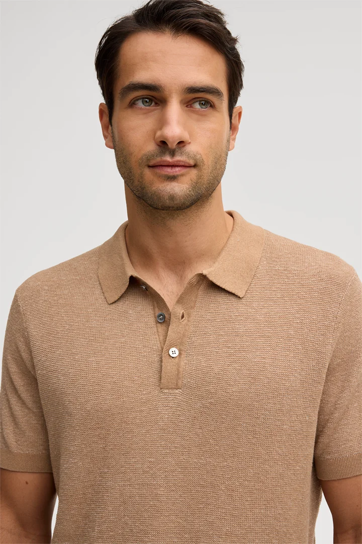 Leinenmix-Polo Lindo mit Baumwolle in Camel