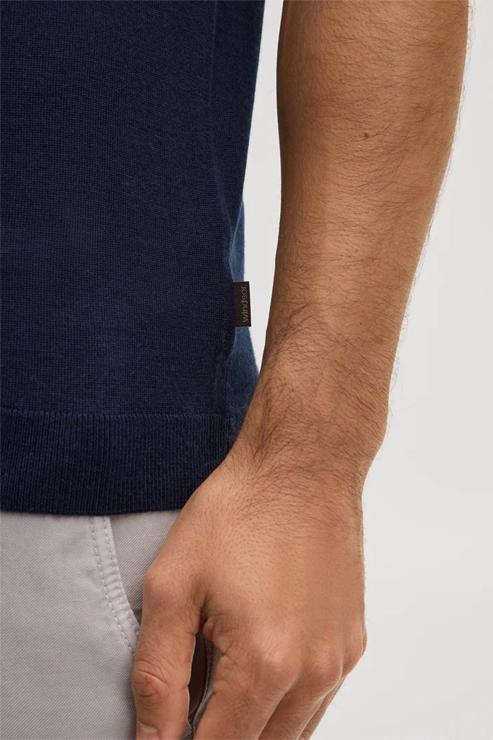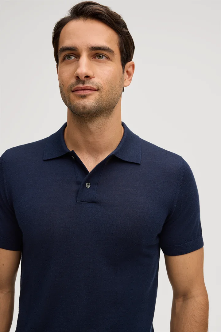 Schurwoll-Strick-Polo-Shirt mit Seide und Cashmere in Navy