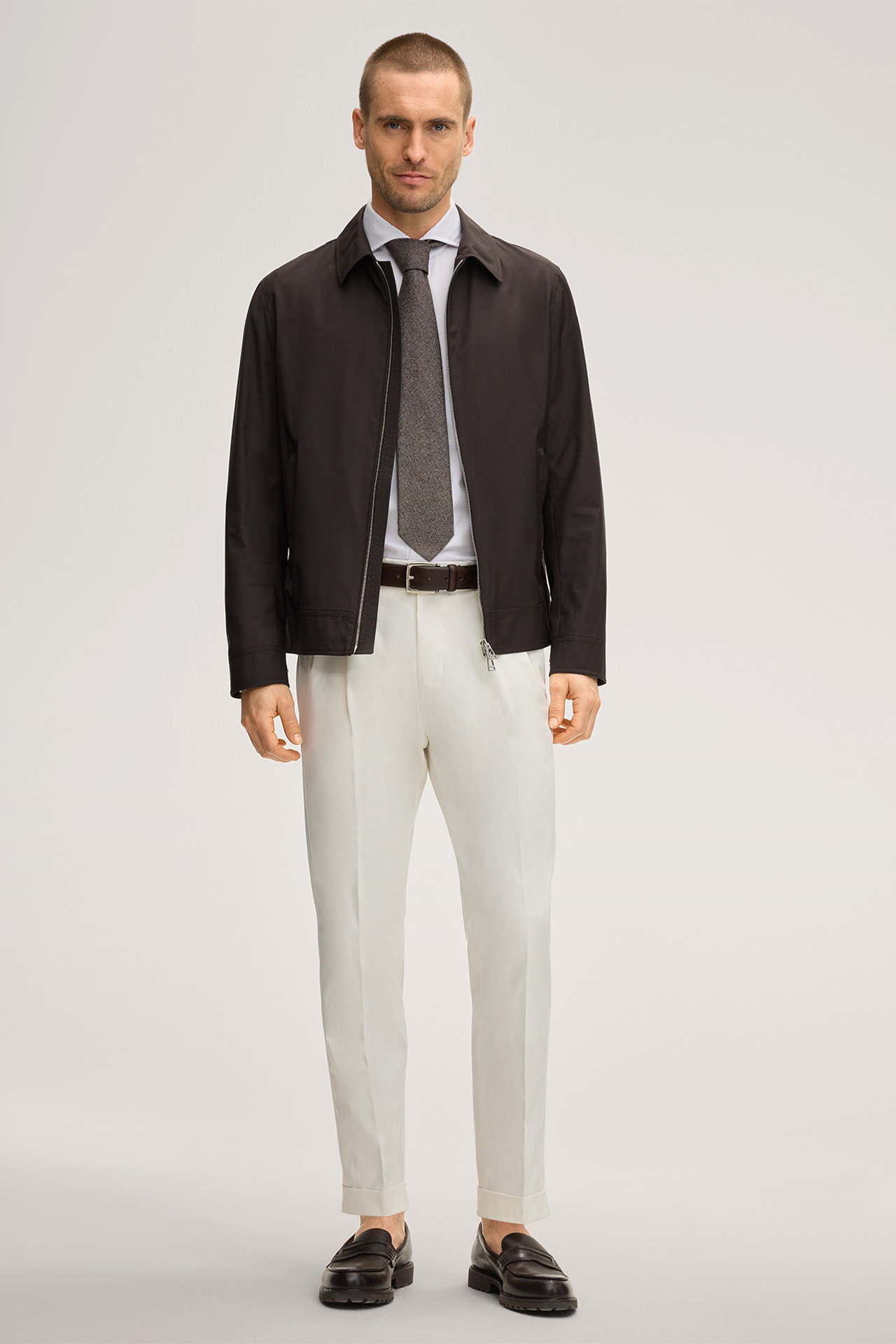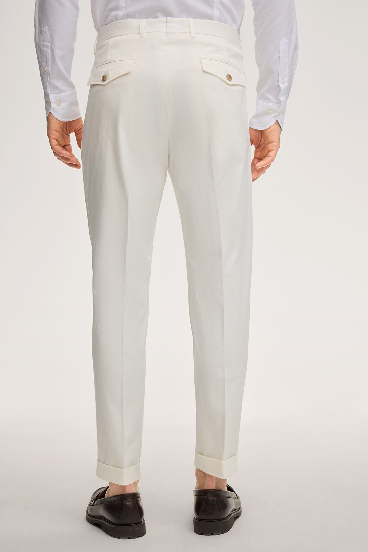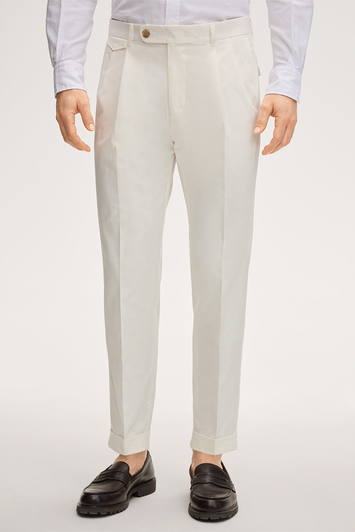 Baumwollmix-Hose Sapo mit Bundfalte in Weiss