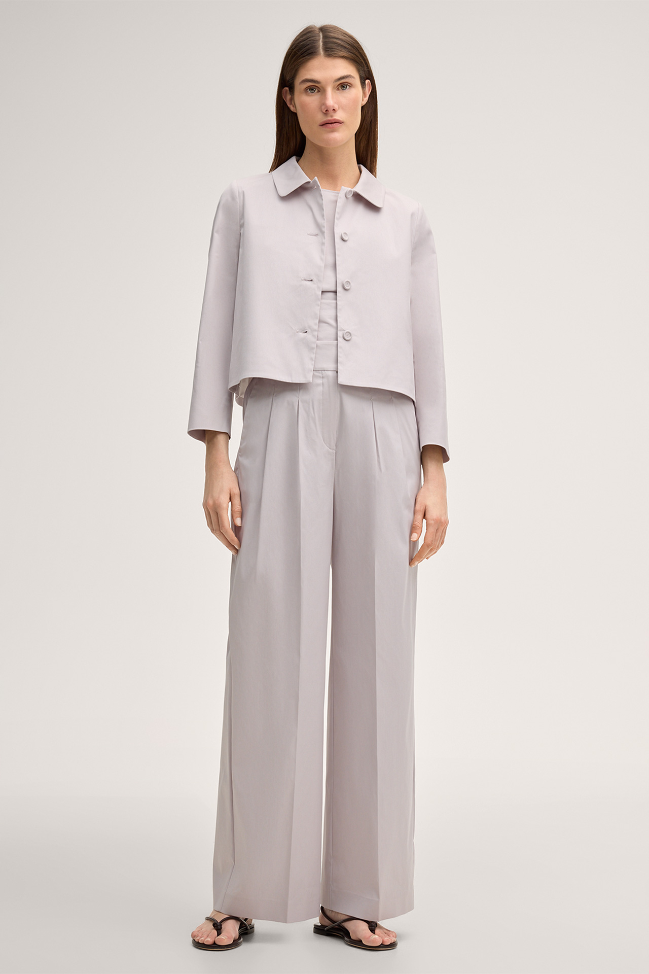 Optimal für die Sommergarderobe erweist sich der unifarbene Blazer aus leichtem Baumwollstretch mit tonaler Knopfleiste. Feine Ziernähte an der Schulterpartie verleihen einen raffinierten Twist. Dreiviertelärmel betonen die moderne Optik. Für einen klassischen Abschluss sorgt der Umlegekragen. Das Essential strahlt auch für festliche Events in Kombination mit einem Rock oder einer femininen Marlehenose selbstverständliche Eleganz aus und ist vielseitig im Style.