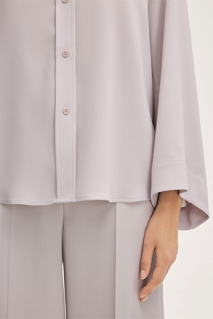Crêpe-Langarm-Hemdbluse in Steingrau