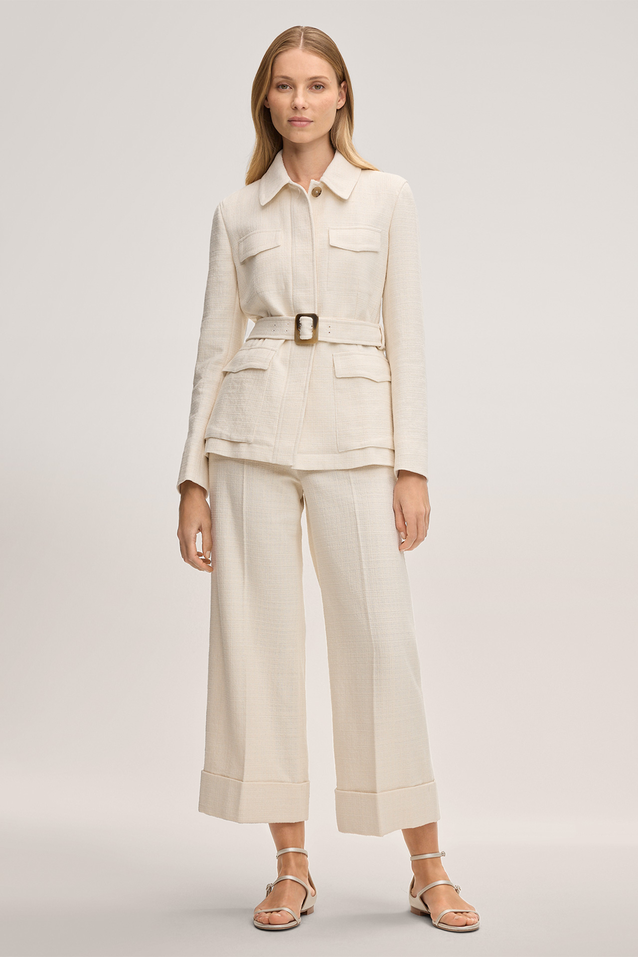 Baumwollmix-Bundfalten-Culotte-Hose in Ecru