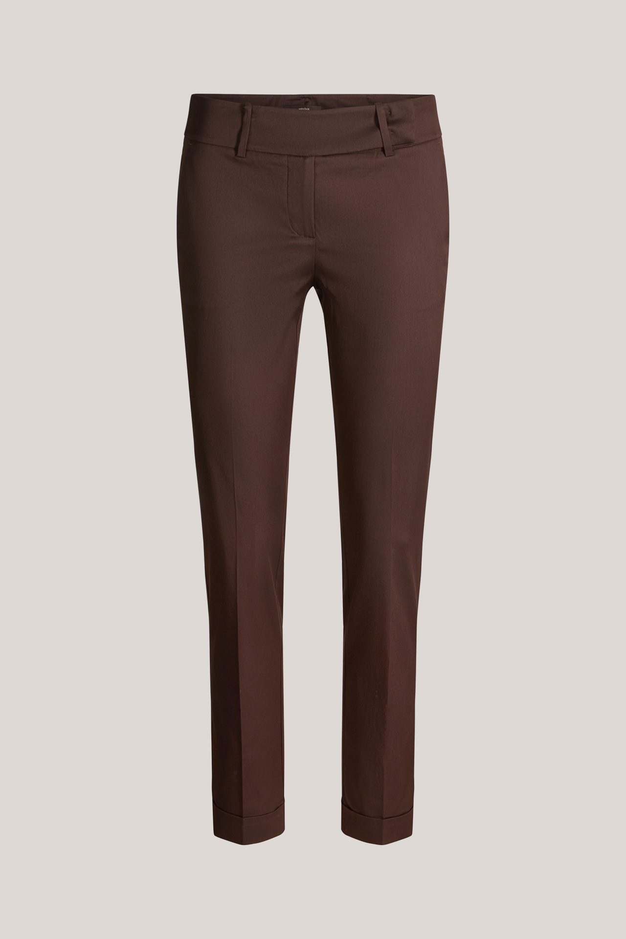 Baumwollstretch-Anzughose mit Umschlag in Dunkelbraun