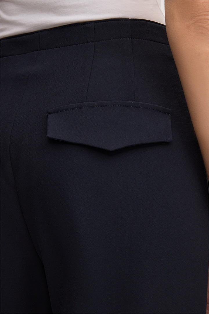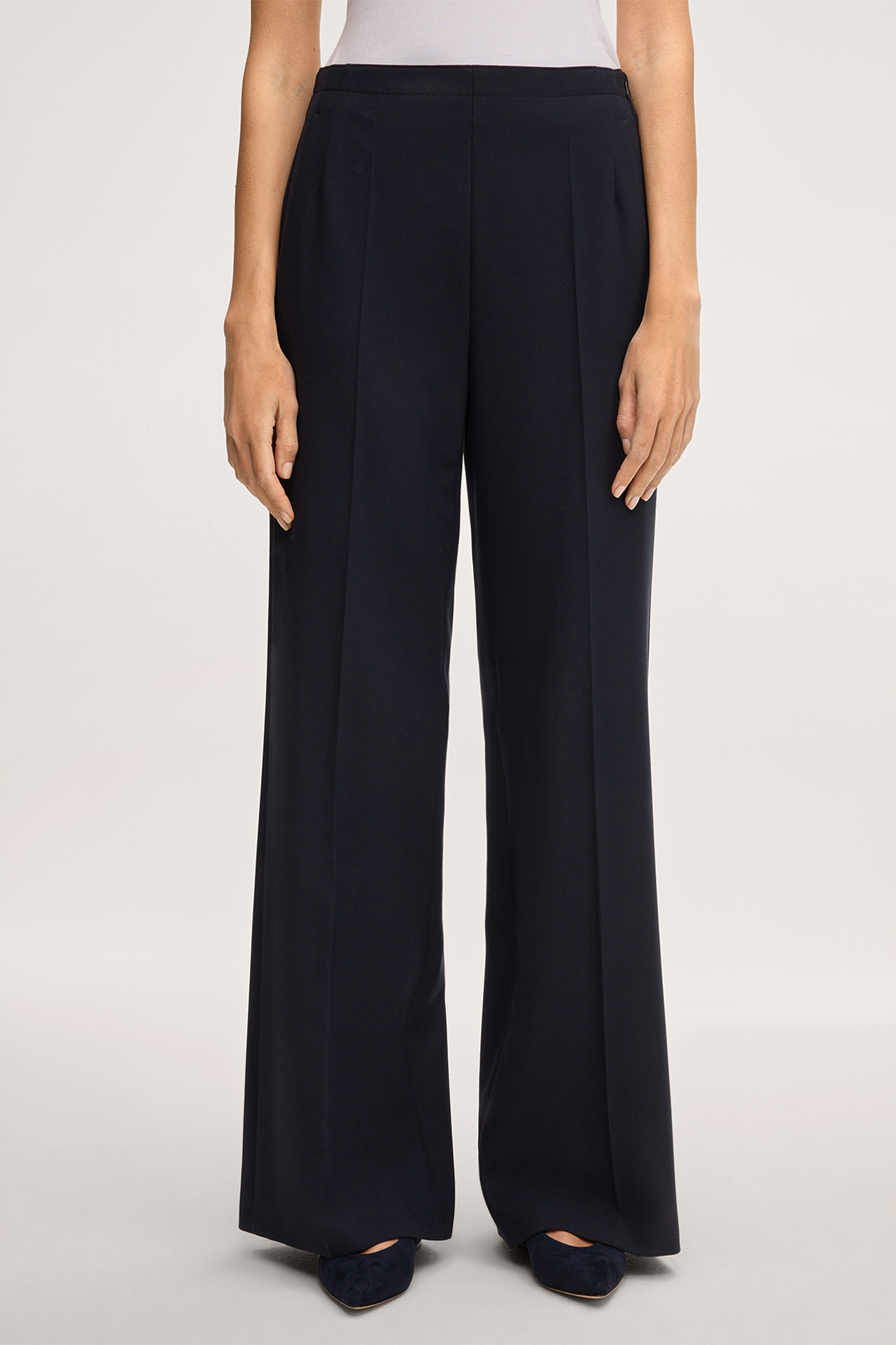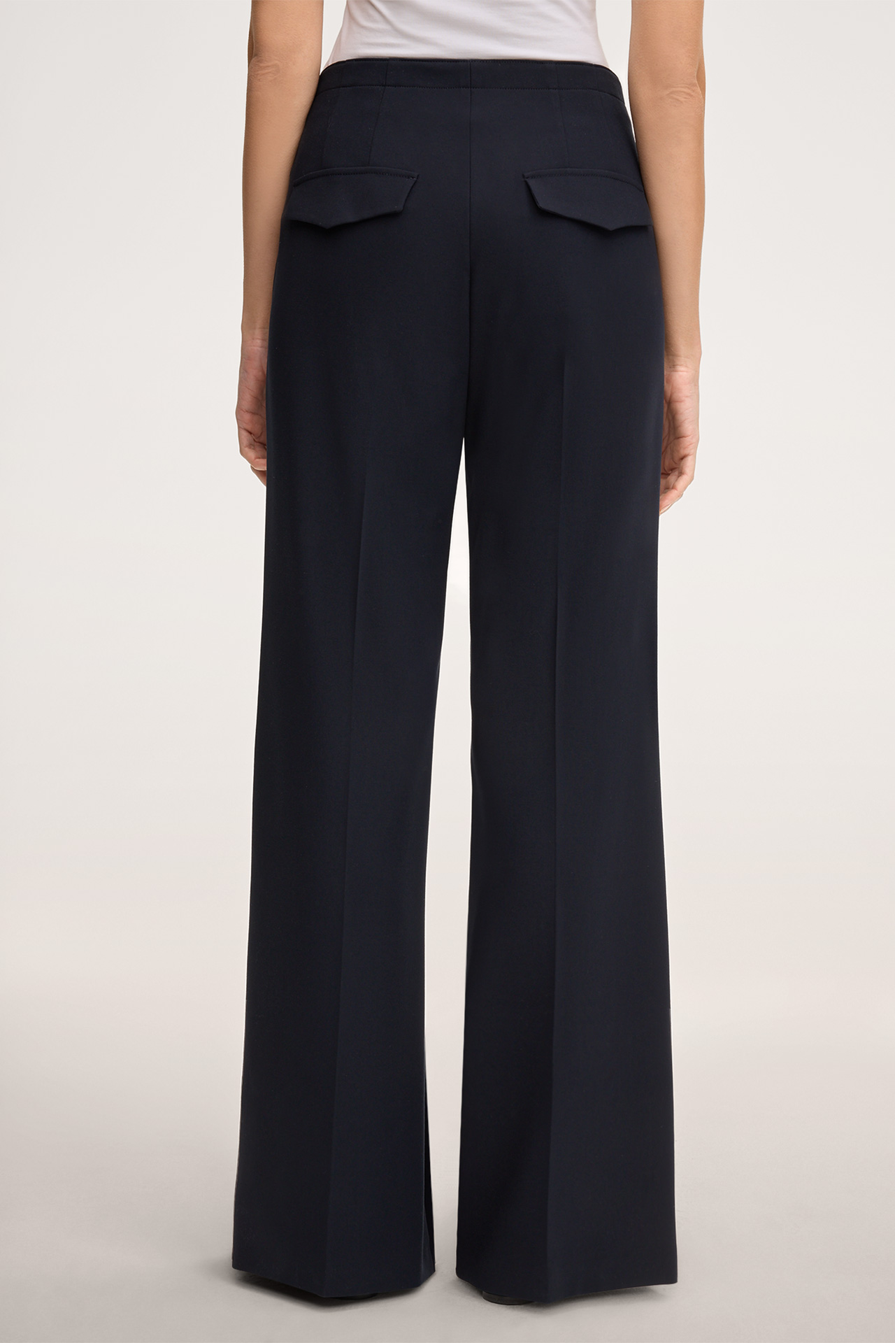 Die Marlenehose in Navy aus dem Hause windsor überzeugt in klassisch weiter Silhouette als eleganter Allrounder. Der hohe Bund und der seitlich verdeckte Zipper schenken angenehmen Tragekomfort, während Bügelfalten und Abnäher klassische Akzente verleihen. Seitliche Eingrifftaschen runden das Design ab. Kombiniert mit Blusen, Shirts und Blazer punktet die Hose als harmonisches Stylingpiece.