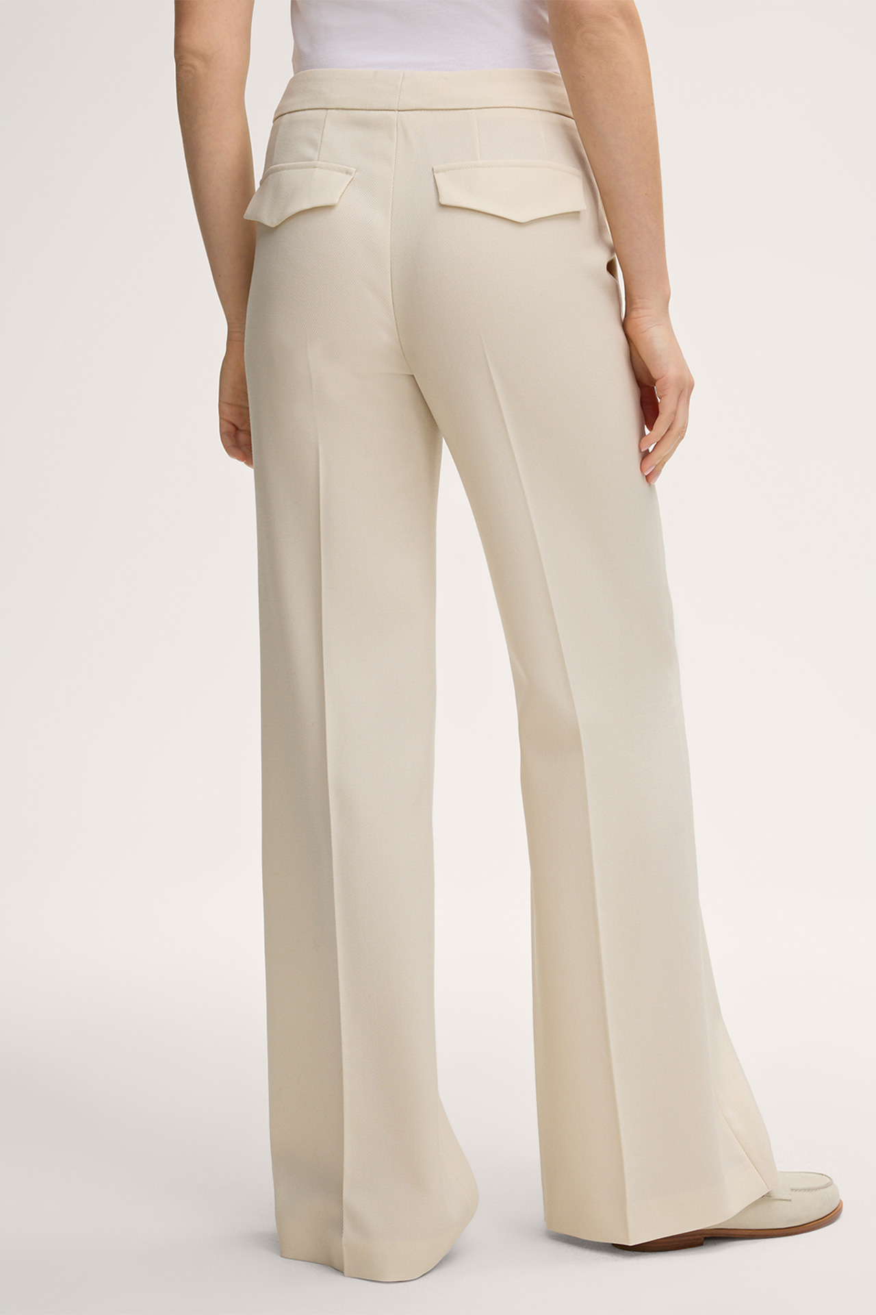 Die elegante Palazzohose überzeugt aus reiner Schurwolle. Eine gerade Silhouette mit Bügelfalten und verdecktem Zip-Verschluss zeichnet das Design aus. Einen Akzent verleiht der modern überschnittene Riegel am Bund. Für das komfortable Finish sorgen seitliche Eingrifftaschen.