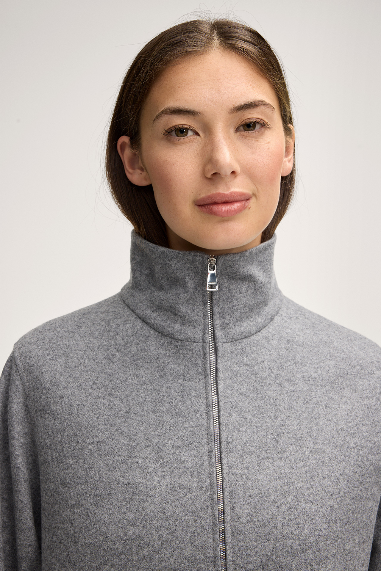 Beeindruckt in lockerer Silhouette: die Jacke aus Wolljersey mit hohem Stehkragen und Zwei-Wege-Zipper. Einen raffinierten Twist verleiht der justierbare Tunnelzug am Saum. Doppelt vernähte Ärmelbündchen runden die stilvolle Optik ab. Für ein komfortables Finish sorgt die Verarbeitung aus reiner Schurwolle.