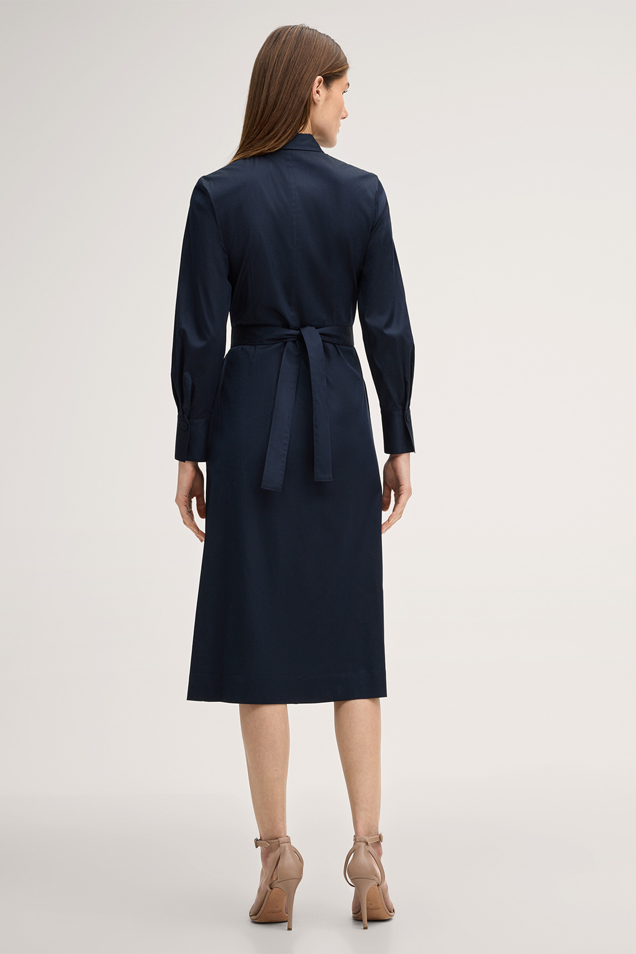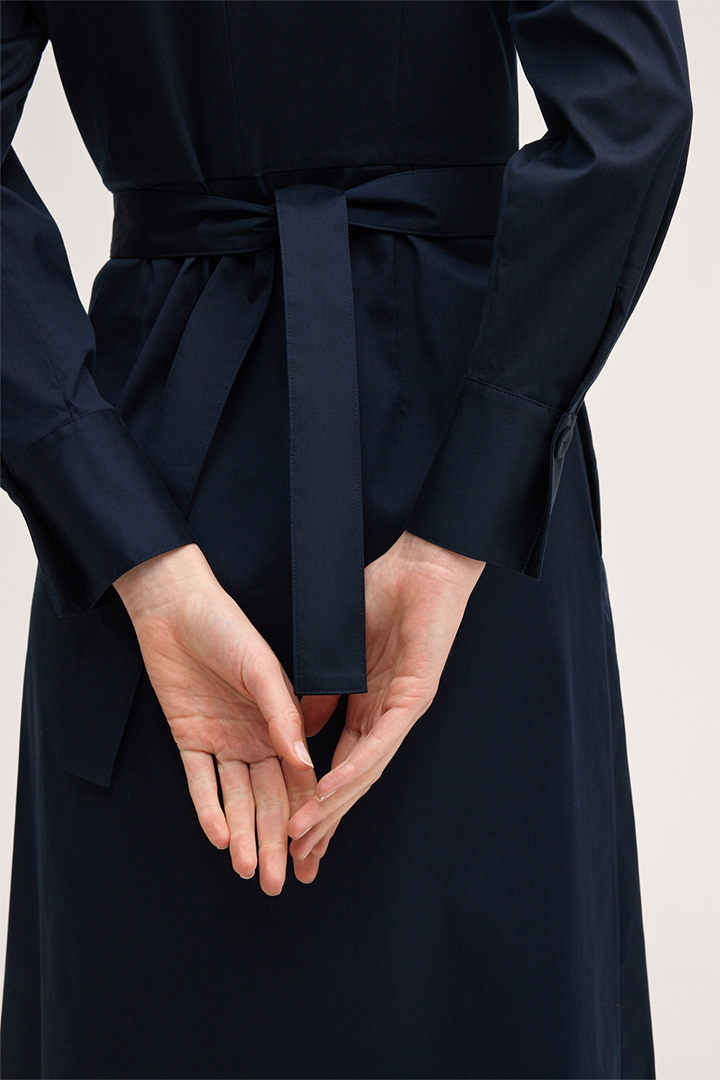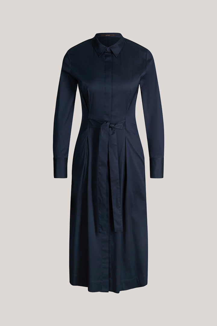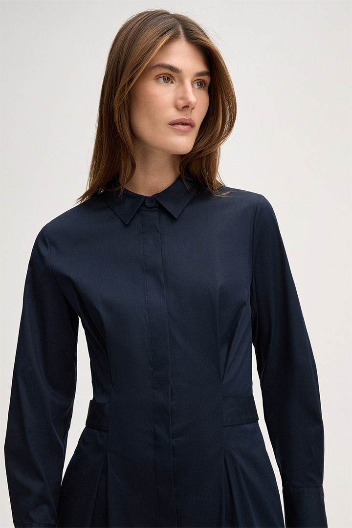 Baumwollstretch-Hemdblusenkleid in Midi-Länge mit Hemdkragen in Navy