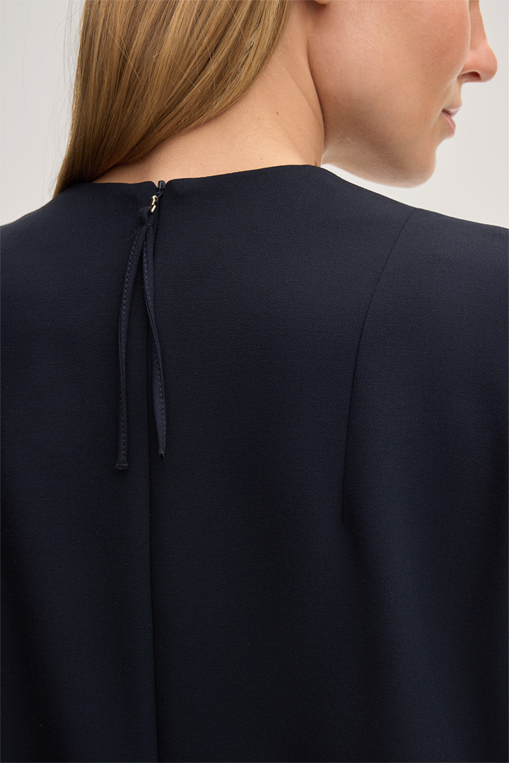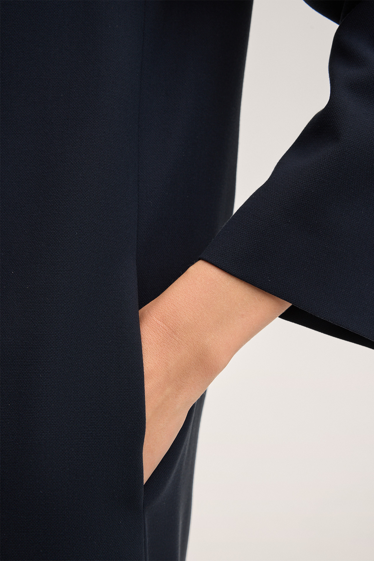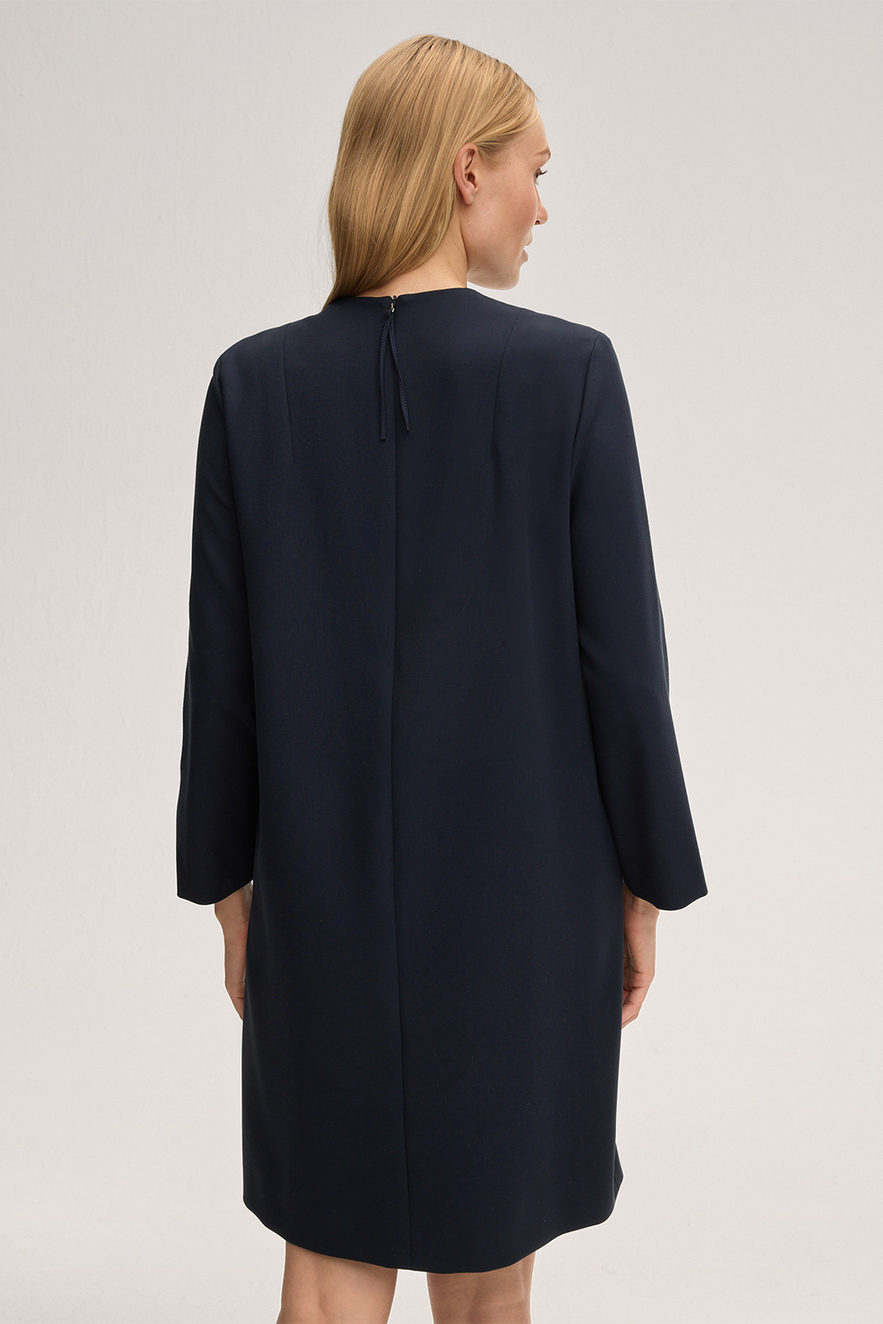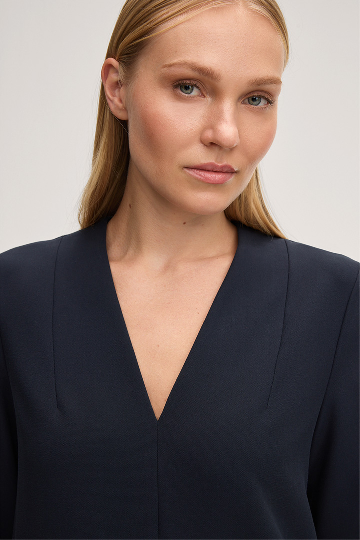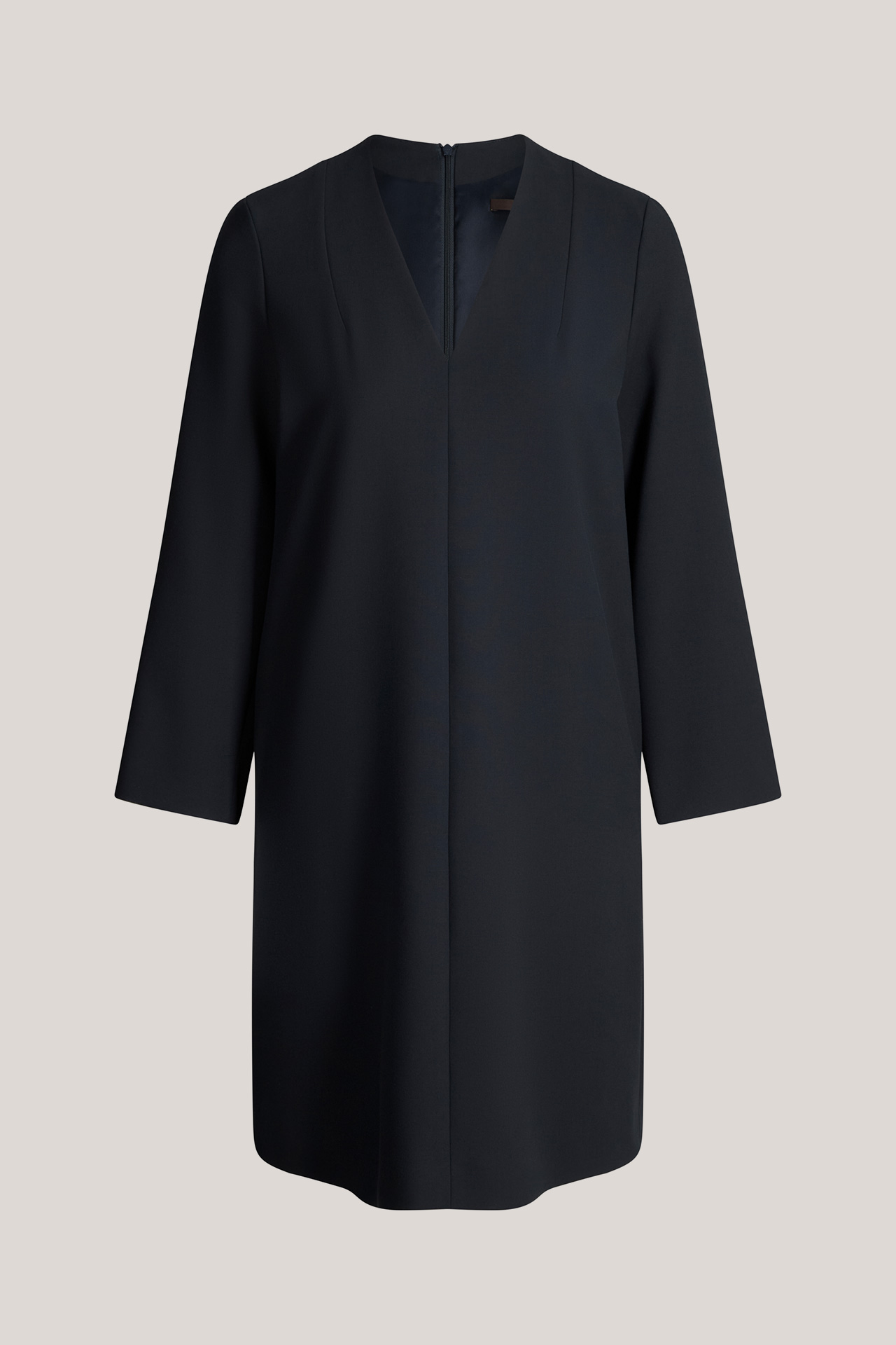 In Crêpe-Qualität aus stretchiger Tech-Viskose überzeugt das Shift-Kleid in klassischer A-Linie. Für den femininen Look sorgt der V-Ausschnitt, während cleane Abschlüsse einen modernen Twist bieten. Nahtverdeckte Taschen sowie der rückseitige Zipper runden den Style harmonisch ab.