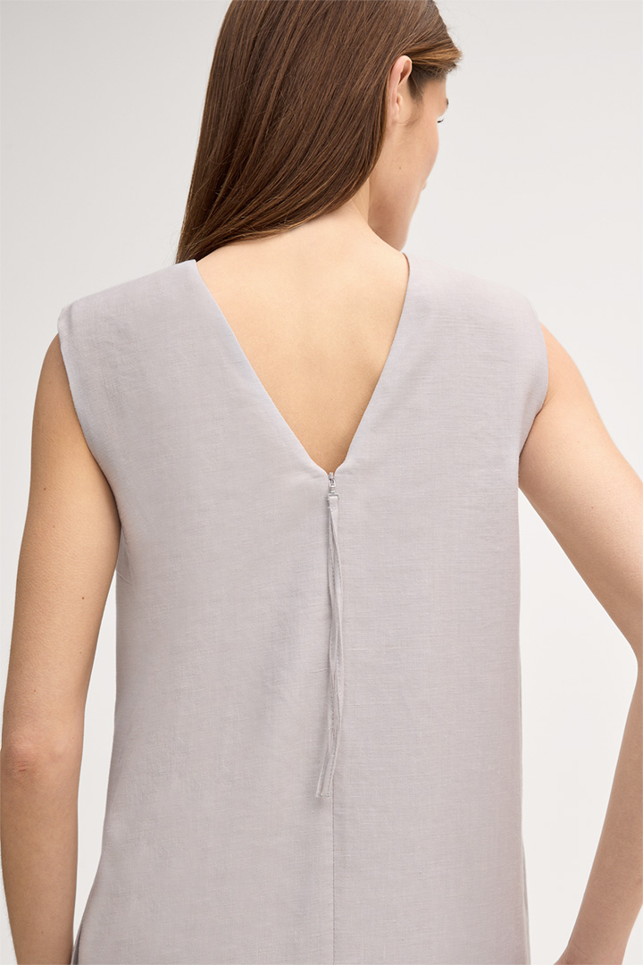 Die angenehm leichte Leinenmischung zeichnet das Eggshape-Kleid als komfortablen Klassiker für verschiedene Business und Freizeitanlässe aus. Clean verarbeitete Abschlüsse und das ärmellose Design unterstreichen das moderne Flair, stilvoll ergänzt durch nahtverdeckte Taschen. Der Rundhalsausschnitt sowie formgebende Abnäher verleihen dem femininen Favoriten ein zeitloses Finish.