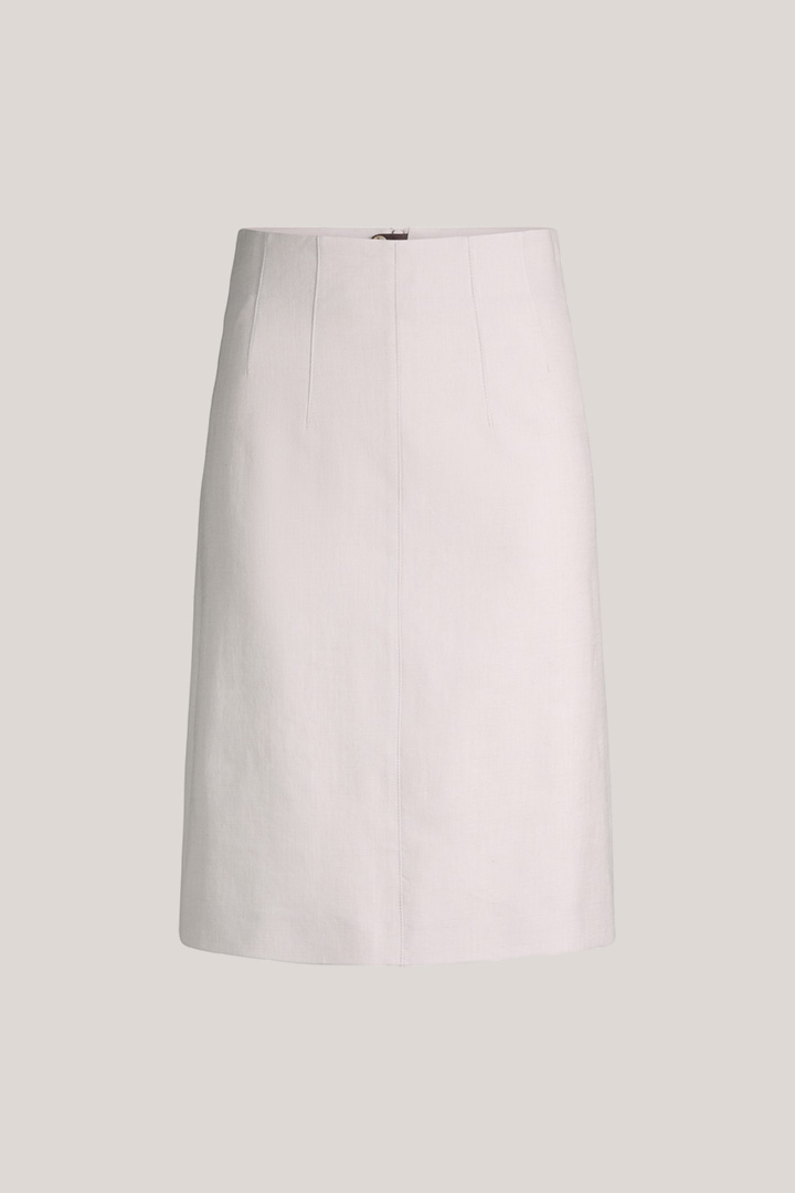 Passend für festliche Anlässe in Kombination mit dem dazugehörigen Blazer oder einer Seidenbluse – der feminin ausgestellte Rock in A-Linie. Der puristische Look erhält durch einen nahtverdeckten Zip-Verschluss und Bundabnäher ein stilvolles Finish. Für puren Tragekomfort sorgt die Leinenmischung mit Lyocell.