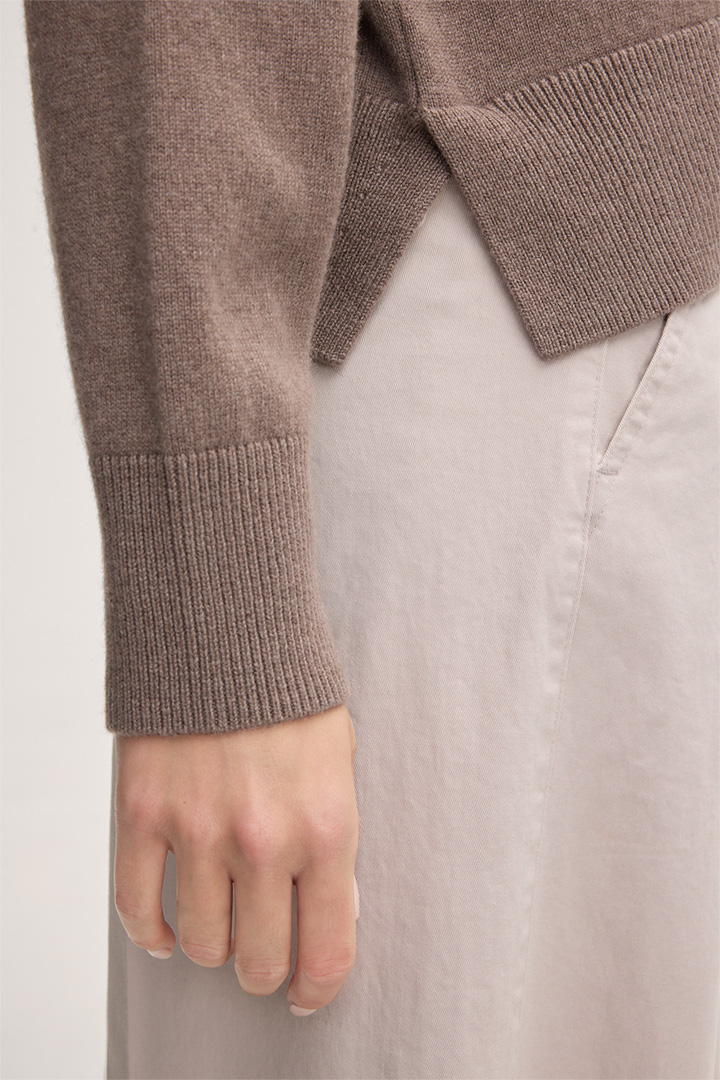 Reine Cashmere-Qualität zeichnet den Pullover als Allrounder mit luxuriösem Twist aus, passend zu Denim, Stoffhosen wie Röcken. Stilvolle Akzente setzen ein klassischer Rundhalsausschnitt, lange Raglanärmel und gerippte Bündchen – modern ergänzt durch kurze Seitenschlitze am Saum.