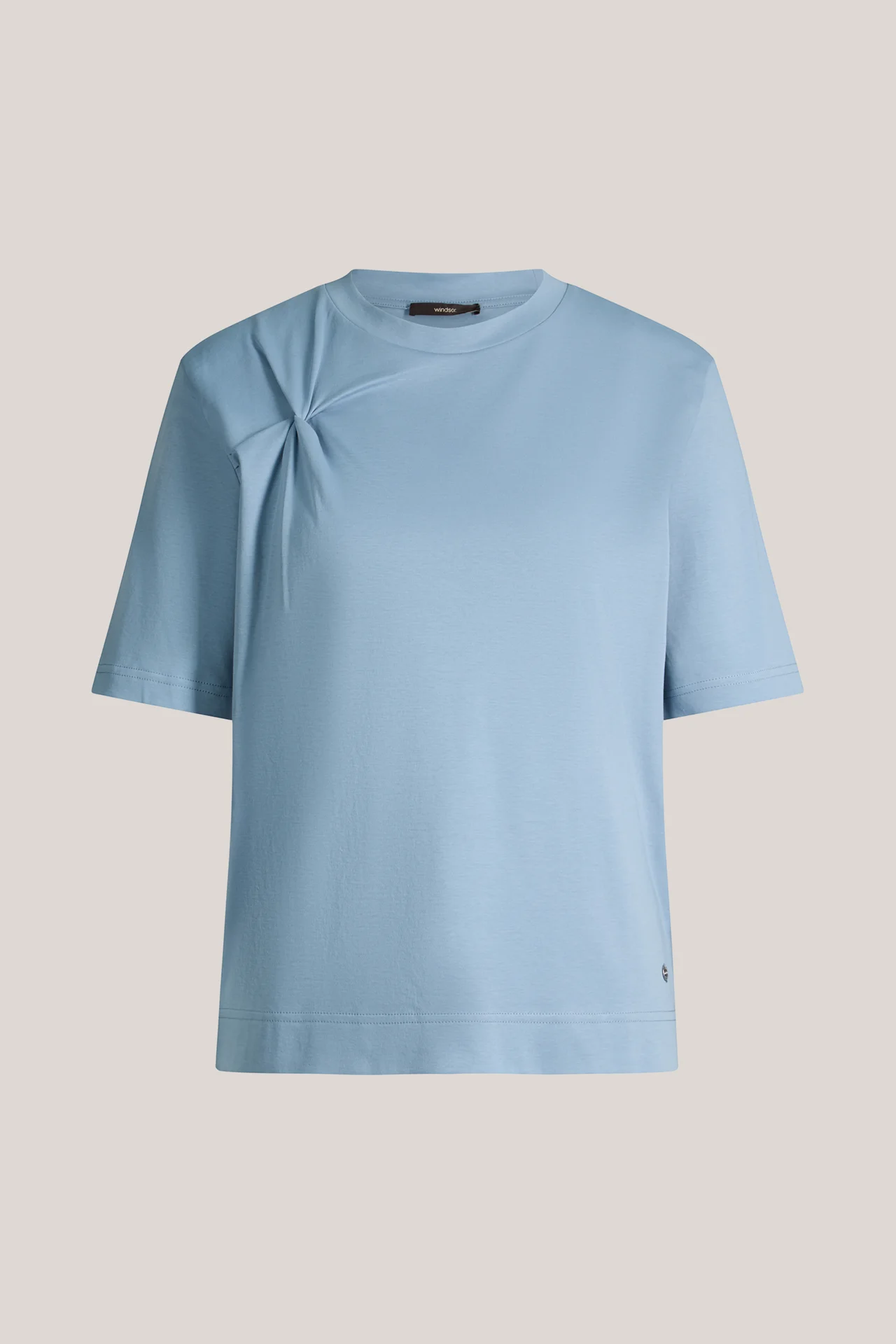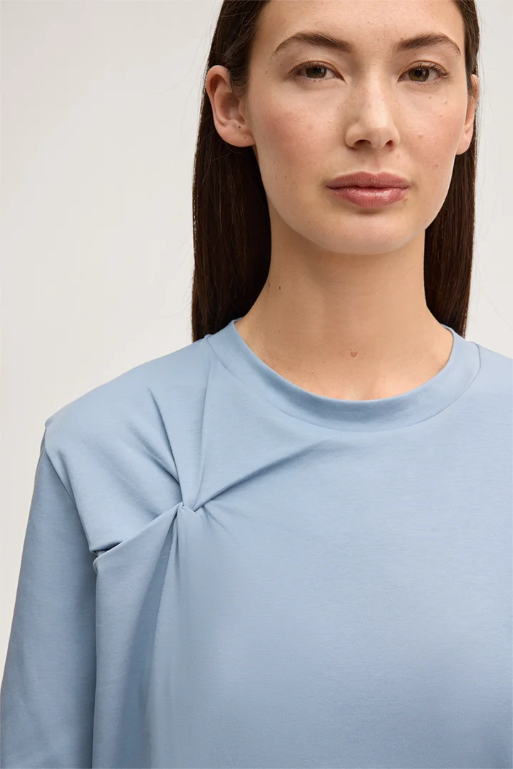Baumwoll-Interlock-Halbarm-Shirt mit Knotendetail in Hellblau