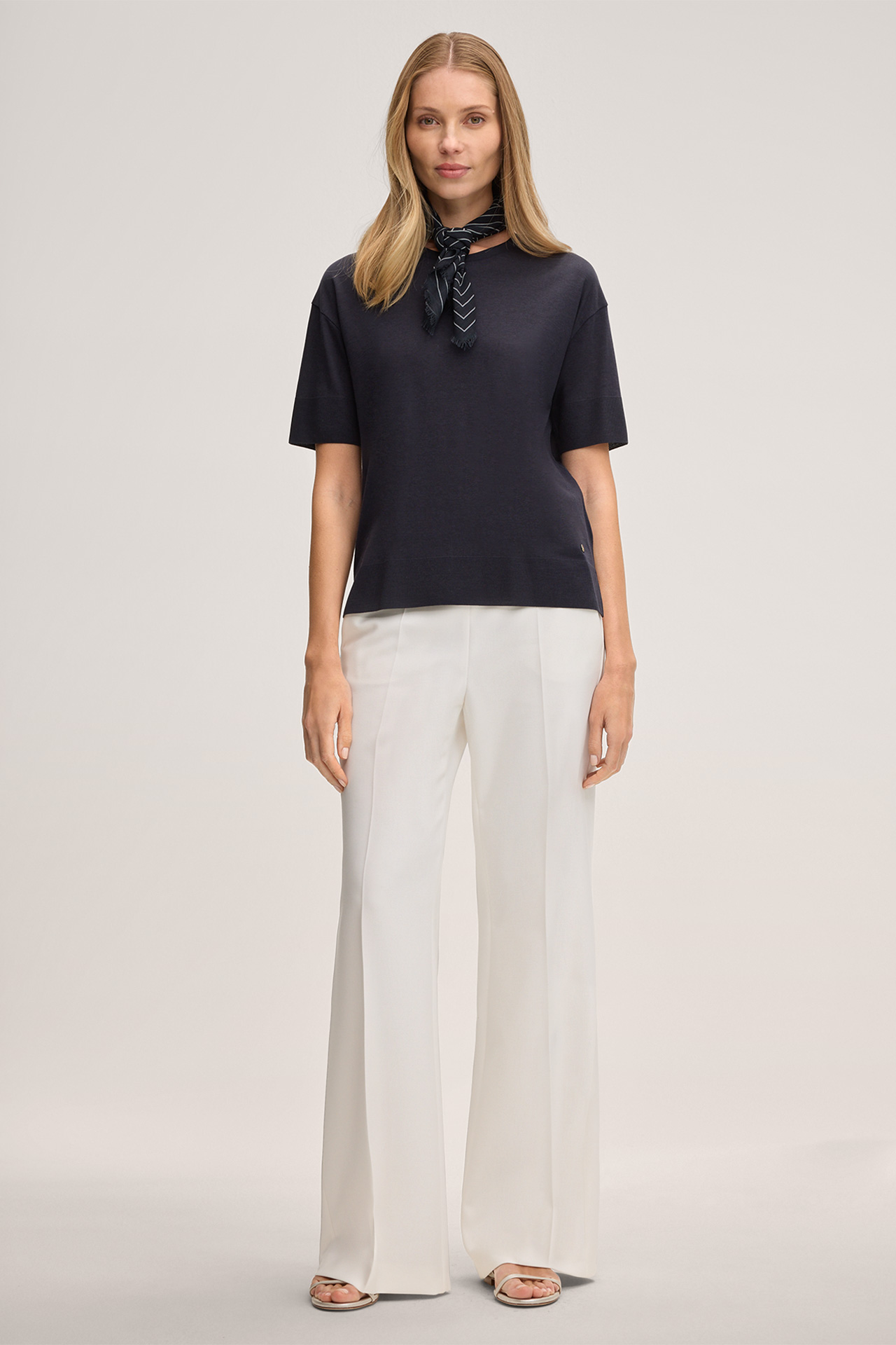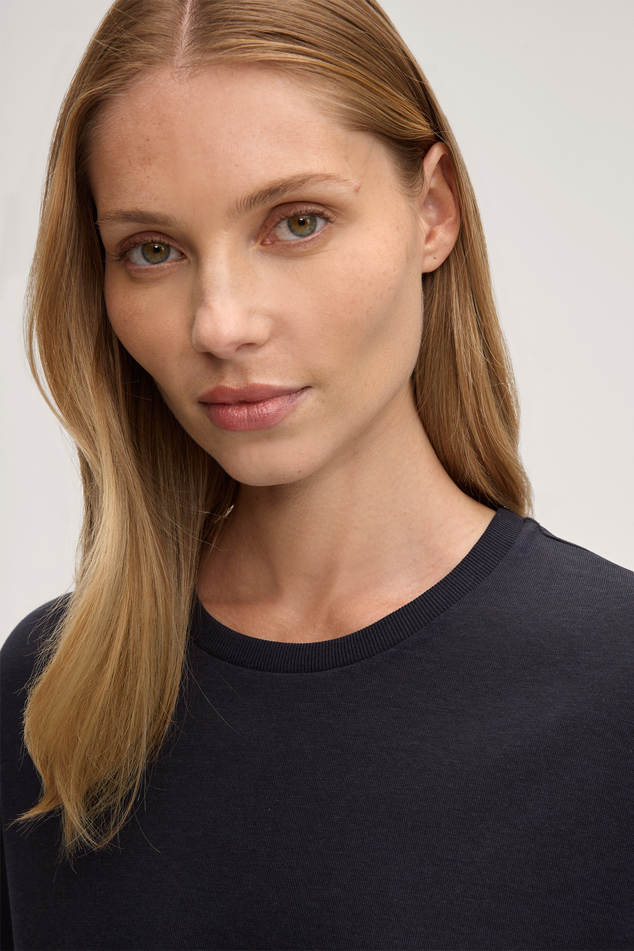 In fließender Lyocell-Baumwoll-Mischung überzeugt das T-Shirt als Allrounder für unterschiedliche Outfits – klassisch ergänzt durch einen Rundhalsausschnitt. Kurze Ärmel mit gerippten Bündchen und der seitlich geschlitzte Saumabschluss verleihen ein modernes Finish.