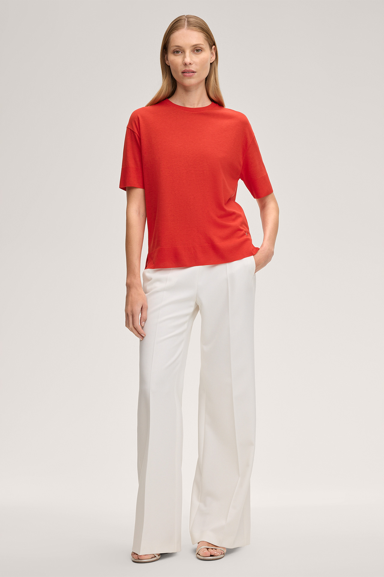 In fließender Lyocell-Baumwoll-Mischung überzeugt das T-Shirt als Allrounder für unterschiedliche Outfits – klassisch ergänzt durch einen Rundhalsausschnitt. Kurze Ärmel mit gerippten Bündchen und der seitlich geschlitzte Saumabschluss verleihen ein modernes Finish.