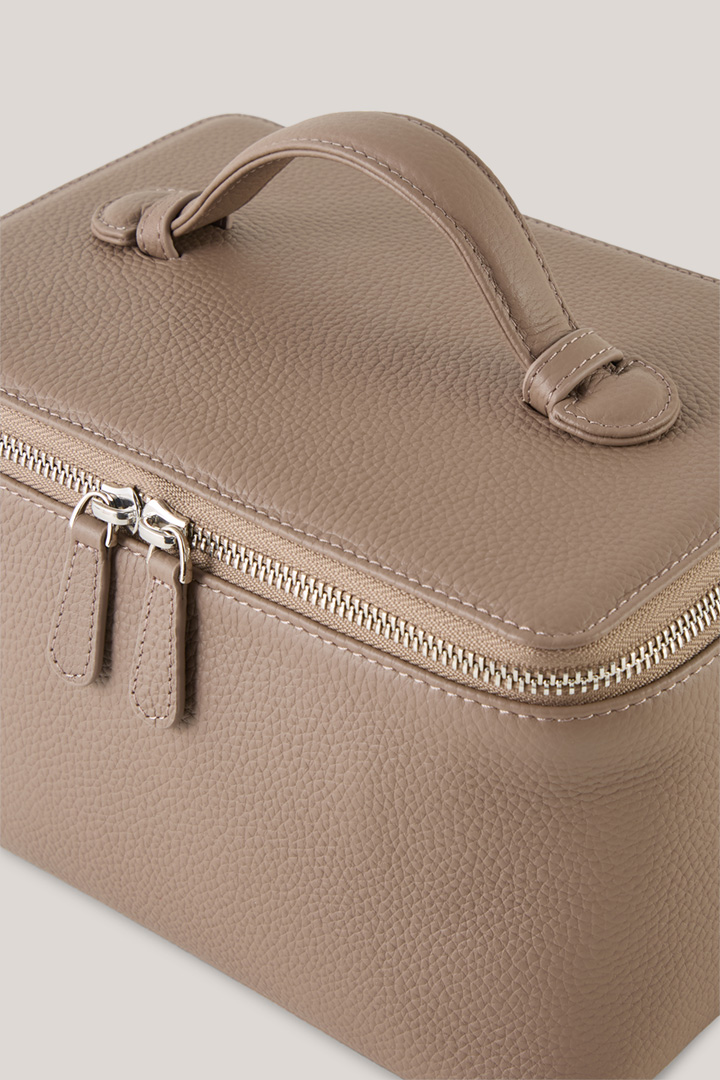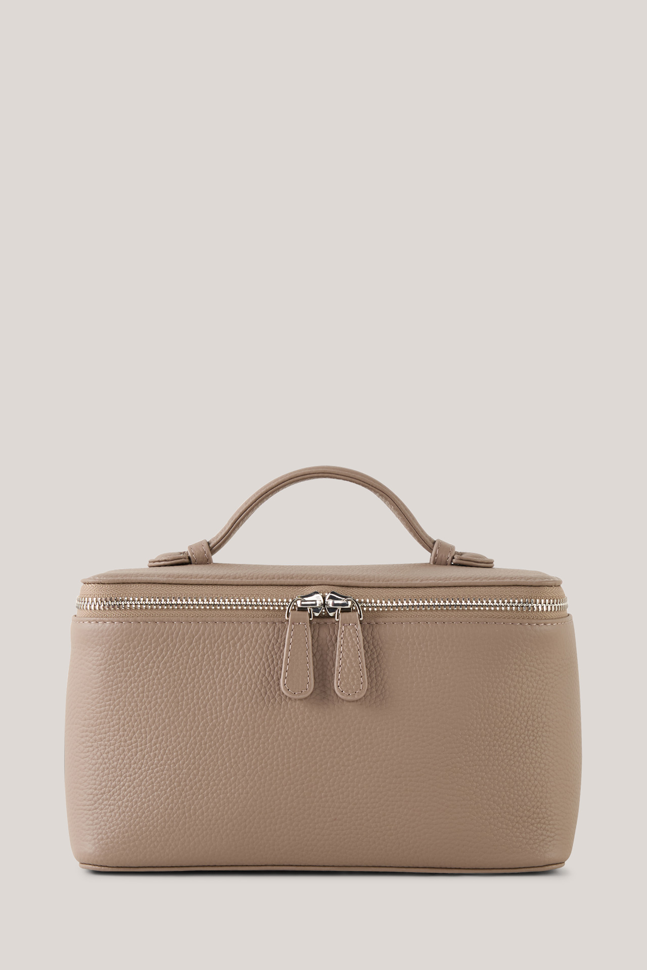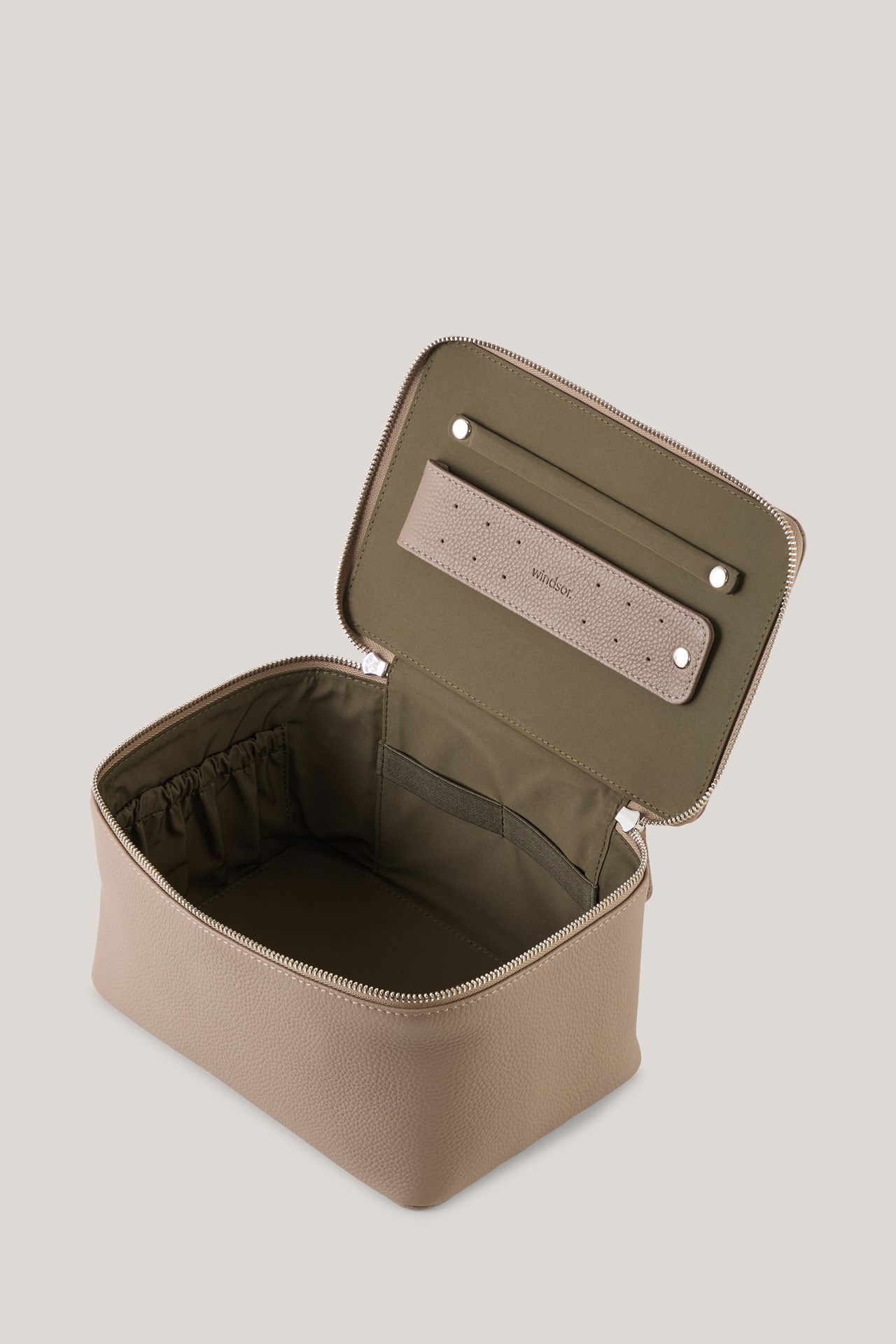 Beauty & Kosmetik stilvoll verwahrt und immer griffbereit gelingt mit der Kulturtasche aus feinem Strukturleder. Das Design begeistert zum Aufklappen mit umfangreichen Steckfächern und praktikablen Details. Durch den Zwei-Wege-Zipper und einen Tragegriff erhält das Accessoire ein funktionales Finish. Ob auf Reisen oder als unentbehrlicher Organizer für zu Hause im Bad, die Bag eignet sich perfekt.