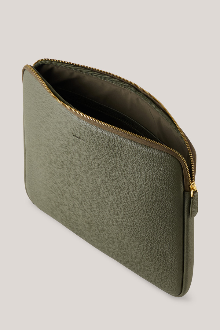 Laptop-Tasche aus Nappaleder in Oliv