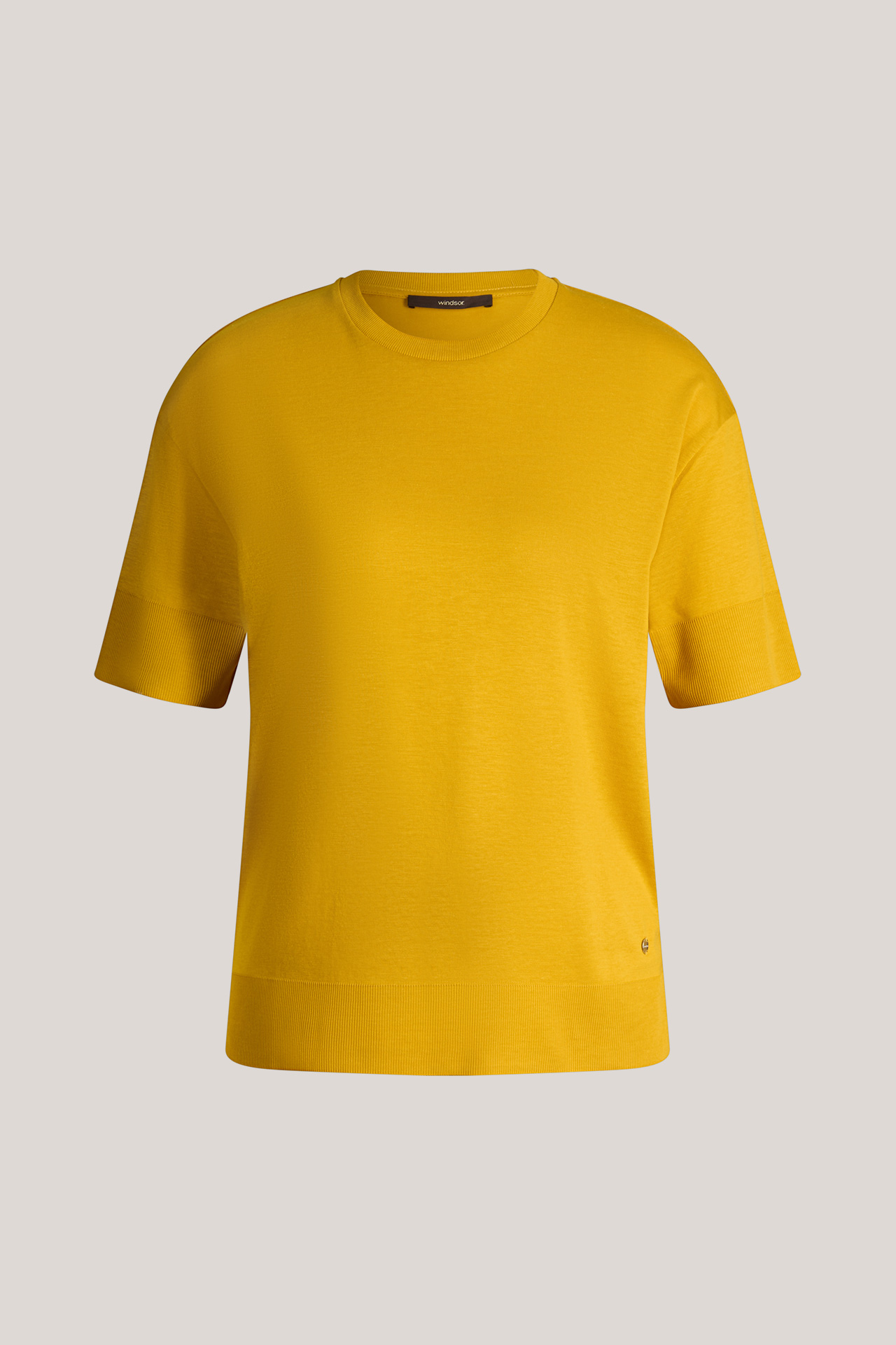 In fließender Lyocell-Baumwoll-Mischung überzeugt das T-Shirt als Allrounder für unterschiedliche Outfits – klassisch ergänzt durch einen Rundhalsausschnitt. Kurze Ärmel mit gerippten Bündchen und der seitlich geschlitzte Saumabschluss verleihen ein modernes Finish.