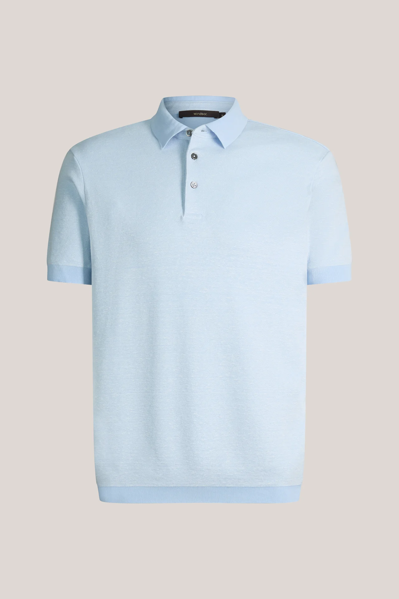Baumwollmix-Polo Tulio mit Leinen in Hellblau meliert