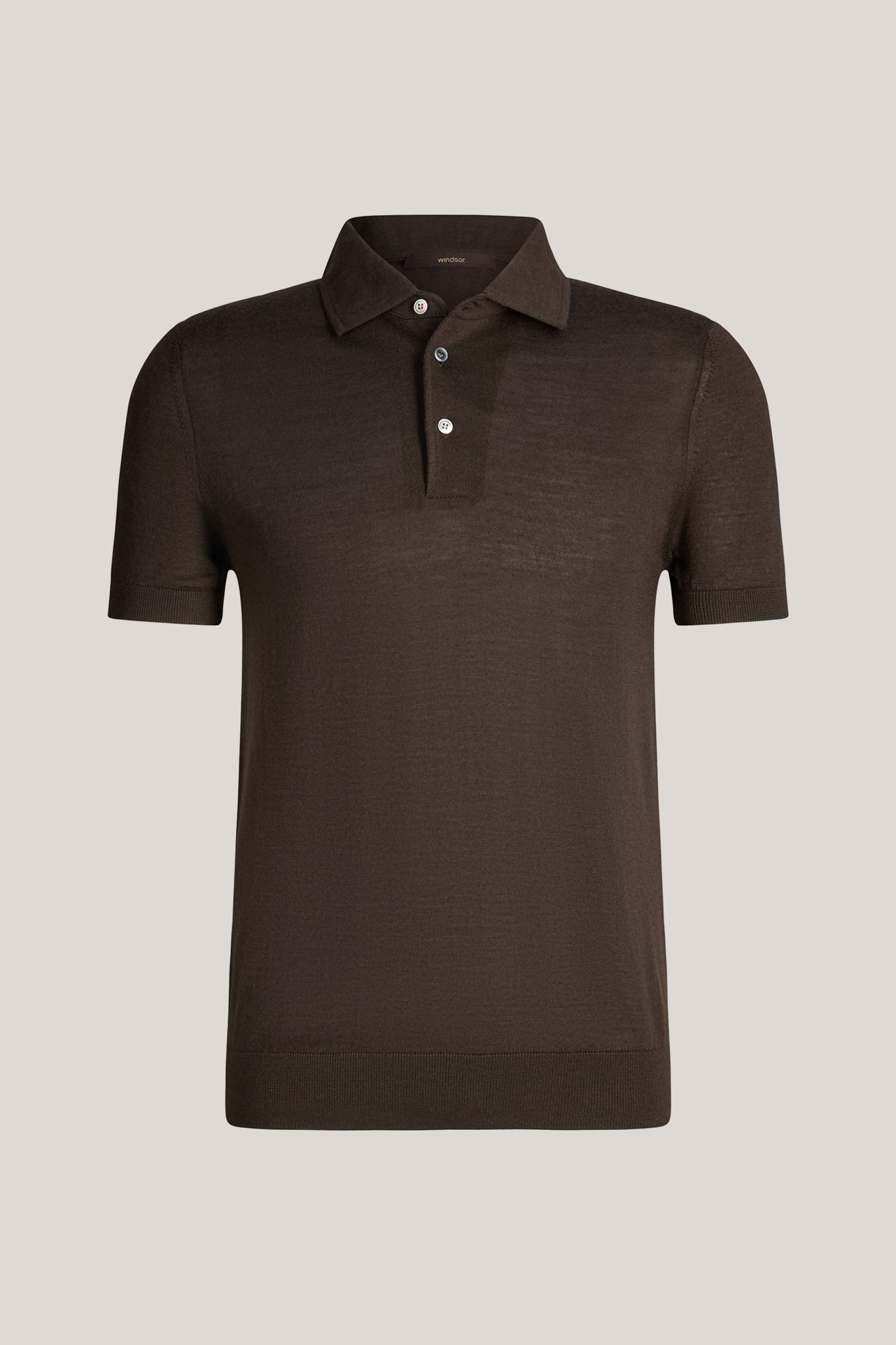 Wollmix-Polo-Shirt Nando mit Cashmere und Seide in Braun