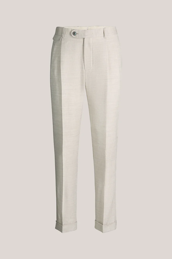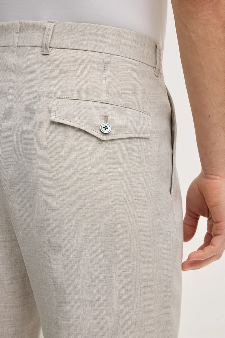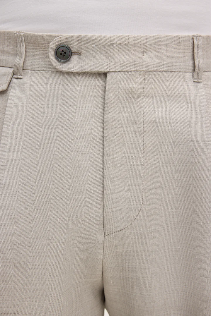 Leinenmix-Baukasten-Hose Sapo mit Schurwolle in Beige Fischgrat