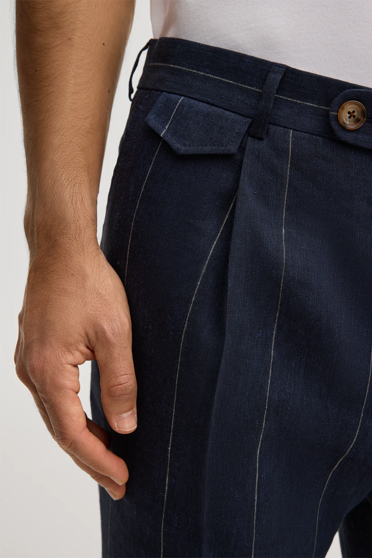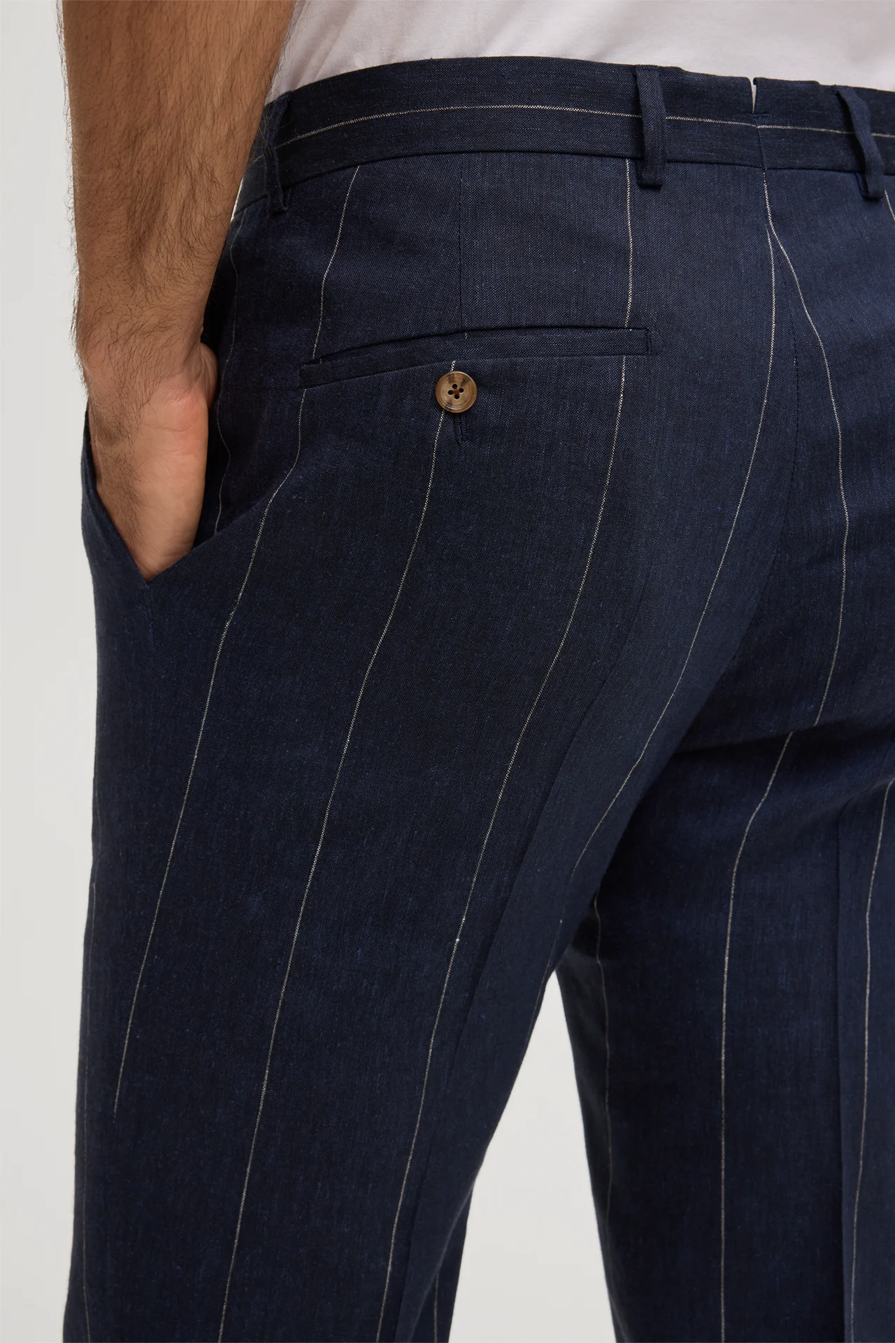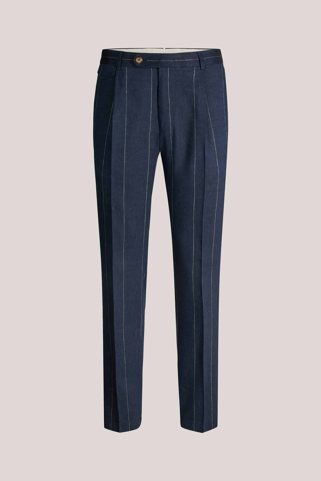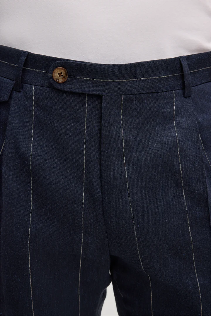 Leinenmix-Baukasten-Hose Silvi mit Schurwolle in Navy mit Nadelstreifen