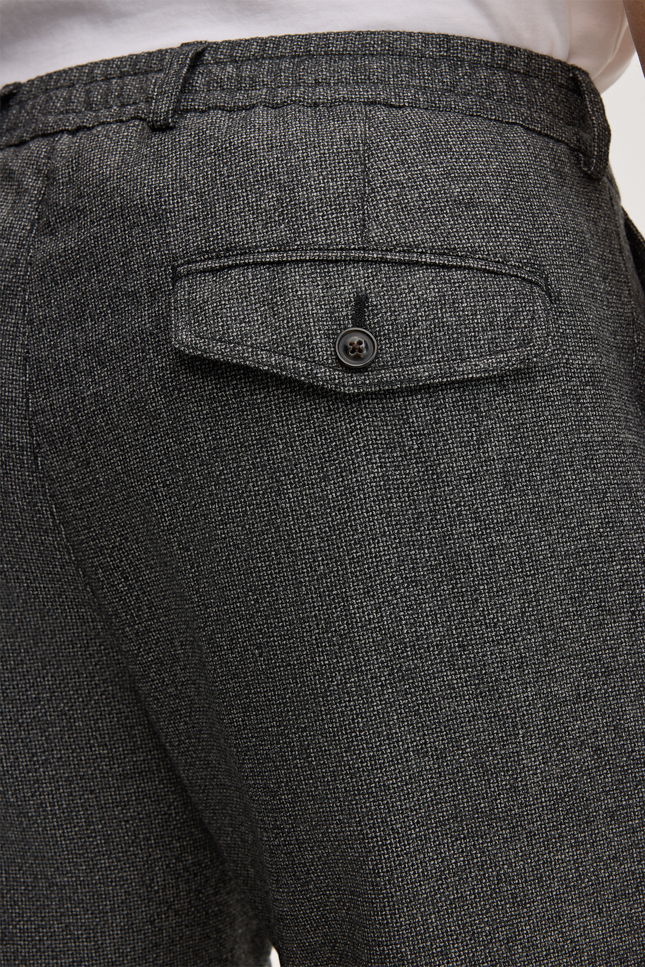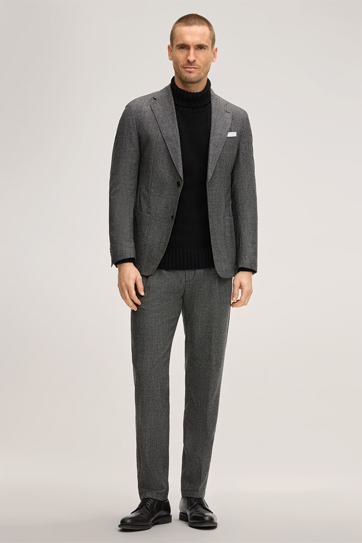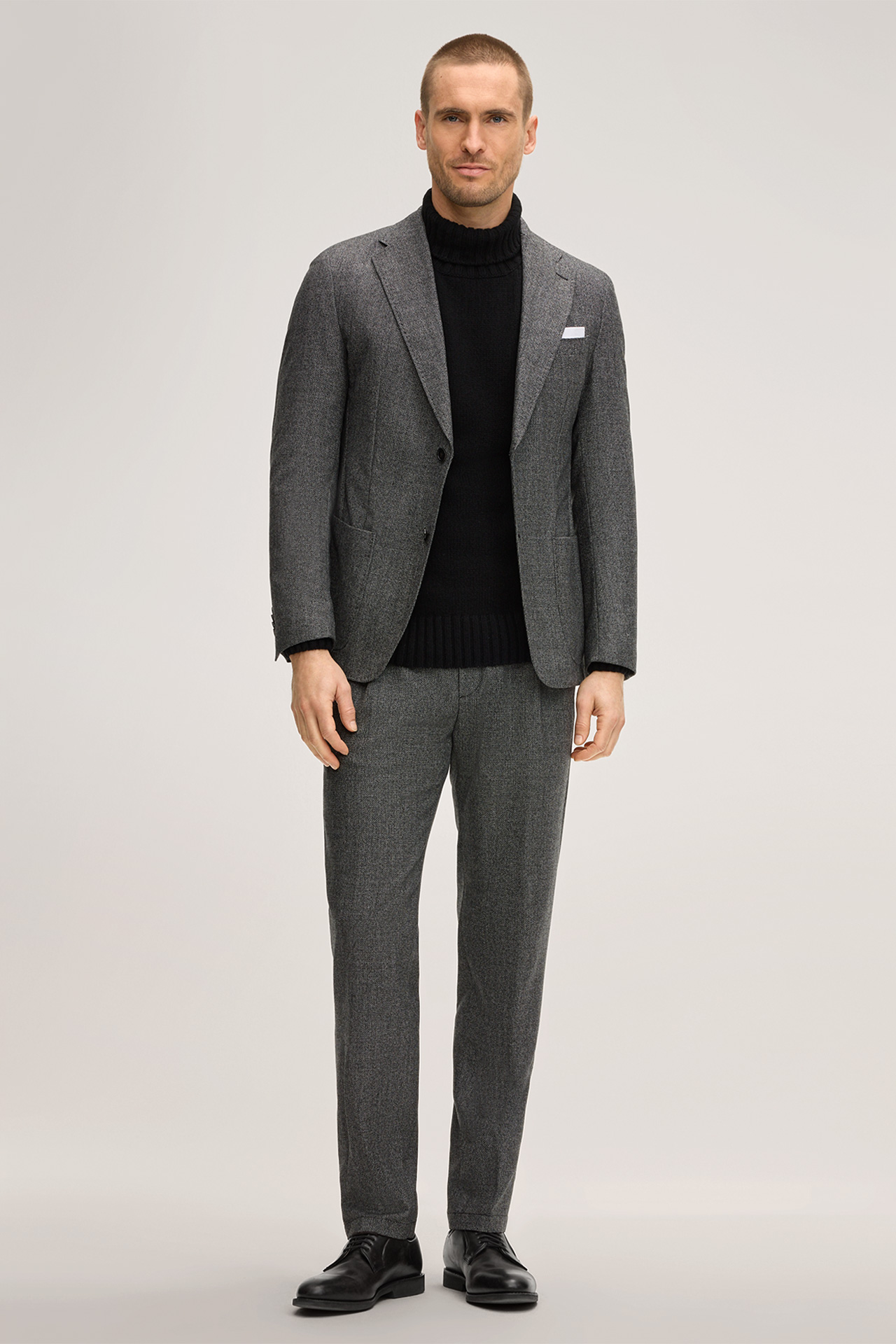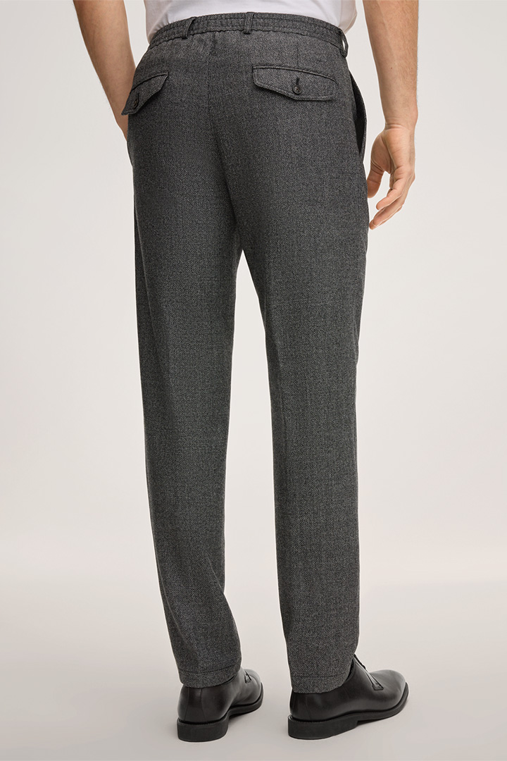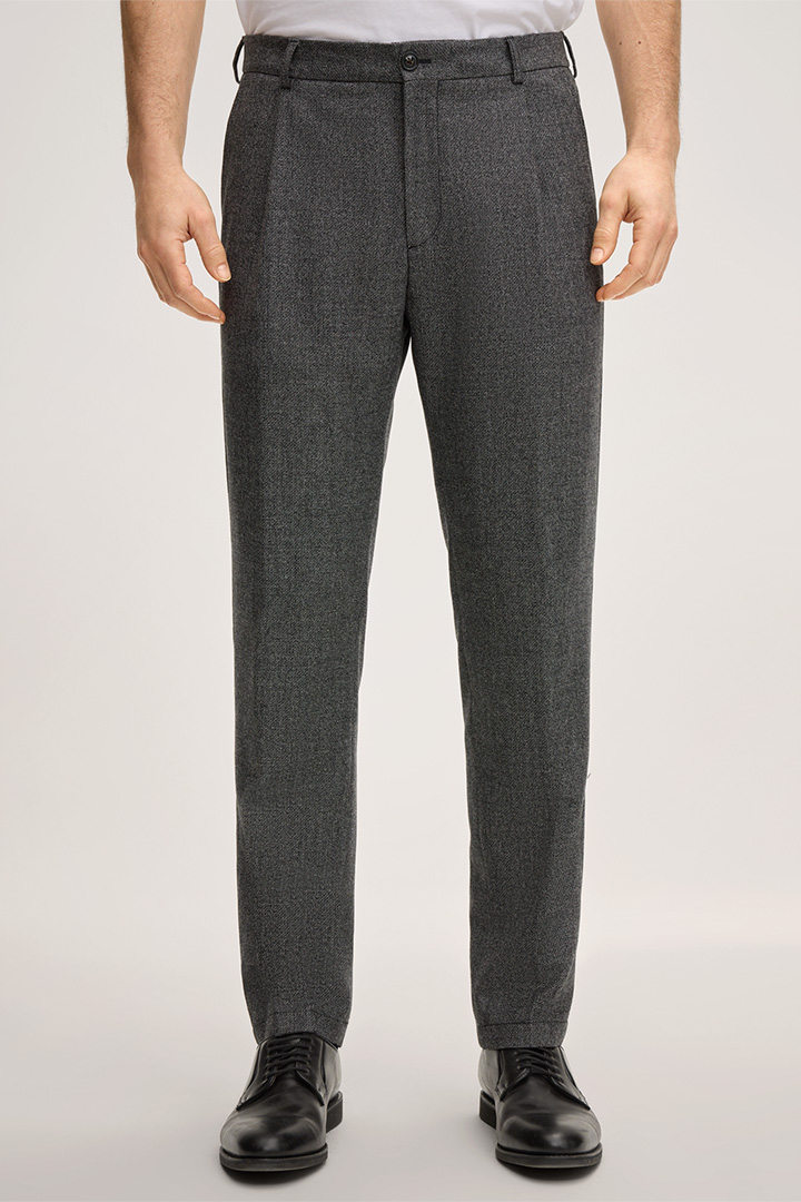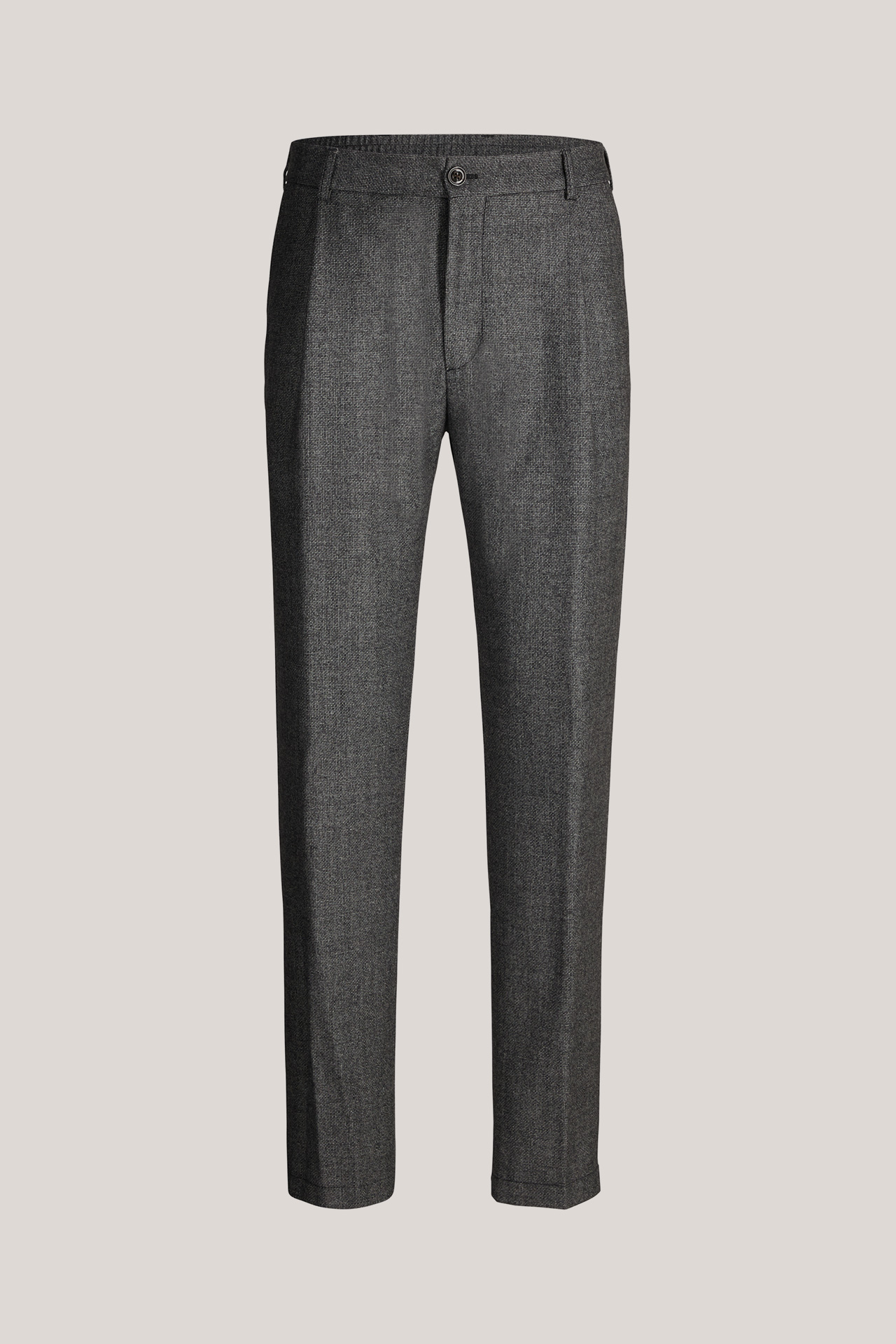 Schurwoll-Baukasten-Hose Flomo mit Bundfalte in Anthrazit strukturiert