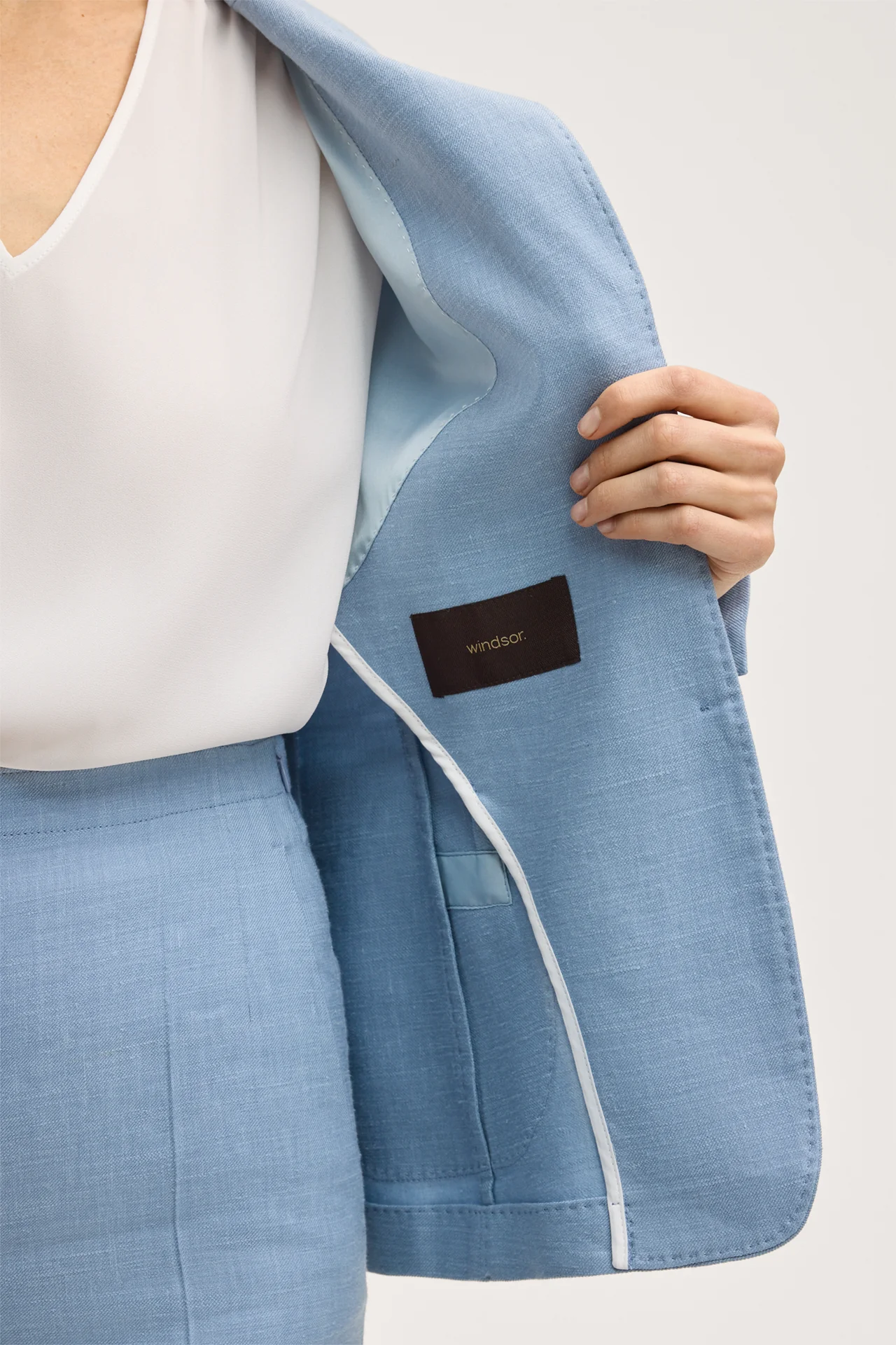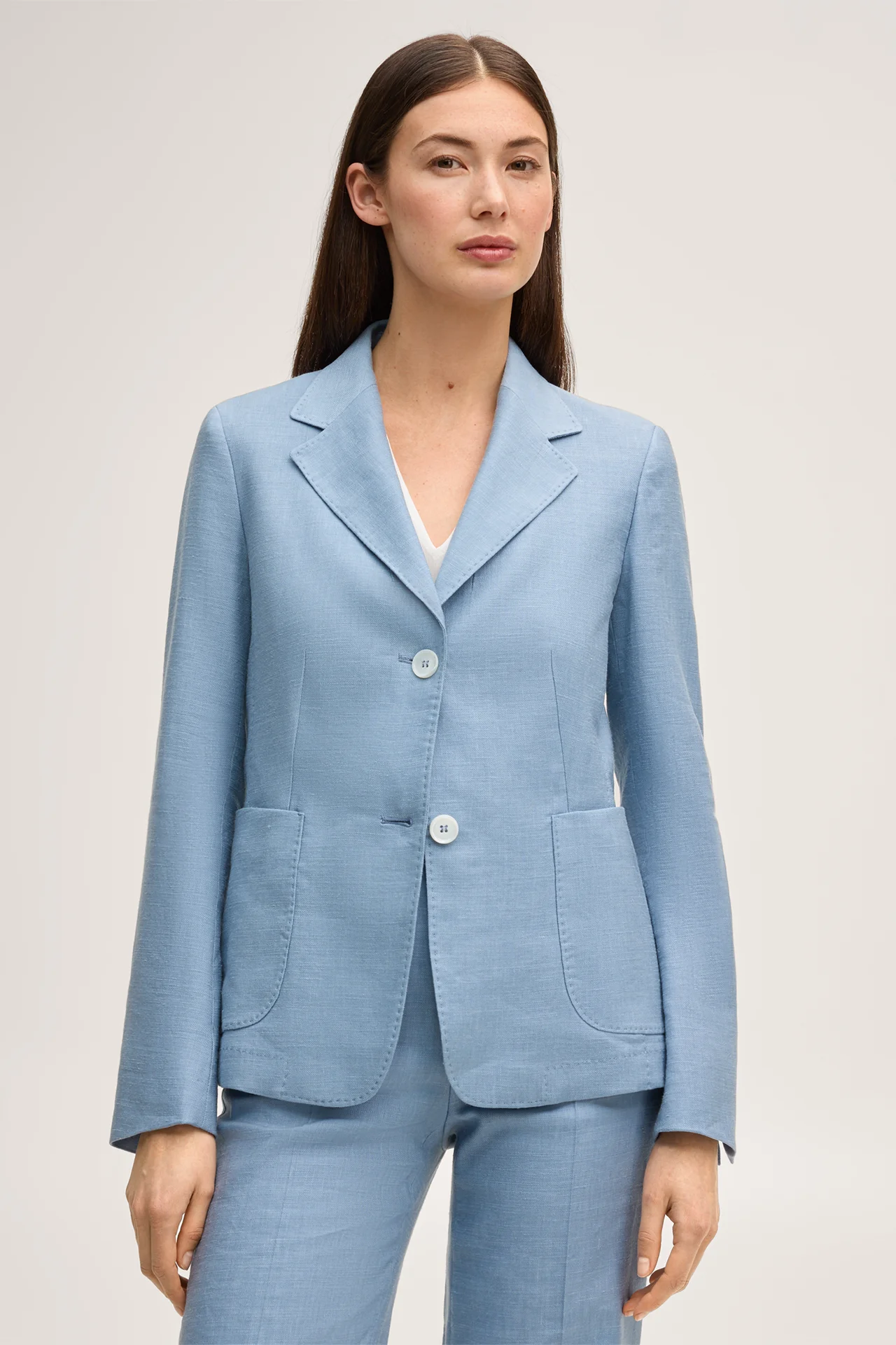 Leinenstretch-Blazer in Hellblau