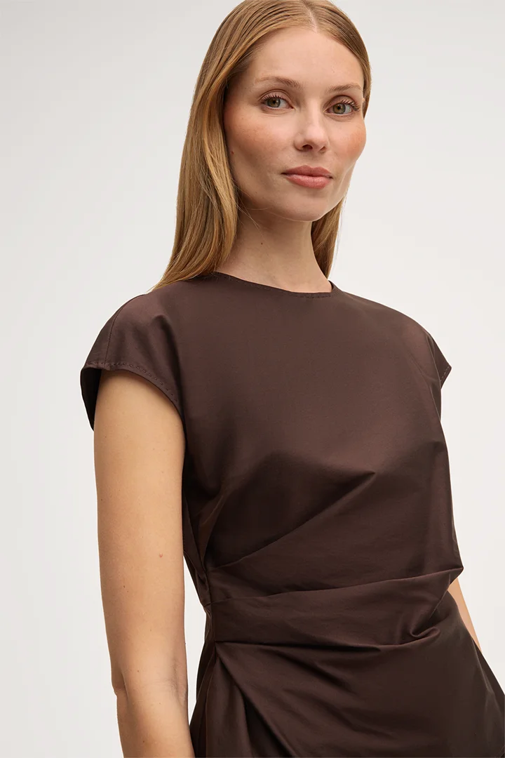 Baumwollstretch-Blusen-Top in Dunkelbraun