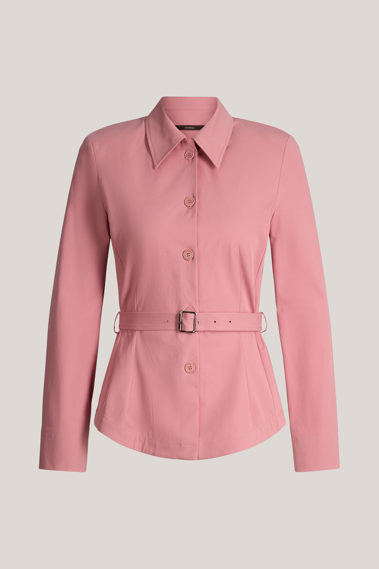 Ob als Allrounder für stilvolle Freizeitlooks, semi-formelle Anlässe oder im Job mit einer passenden Anzughose kombiniert, die feminine Hemdbluse ist ein Must-have für jede Garderobe. Für den souveränen Twist im Blazer-Stil sorgen Schulterpolster und der Taillengürtel. Monochrome Knöpfe und feine Nahtdetails runden das Essential stimmig ab. Puren Tragekomfort bietet die Qualität aus hochwertigem Baumwollstretch-Gabardine.