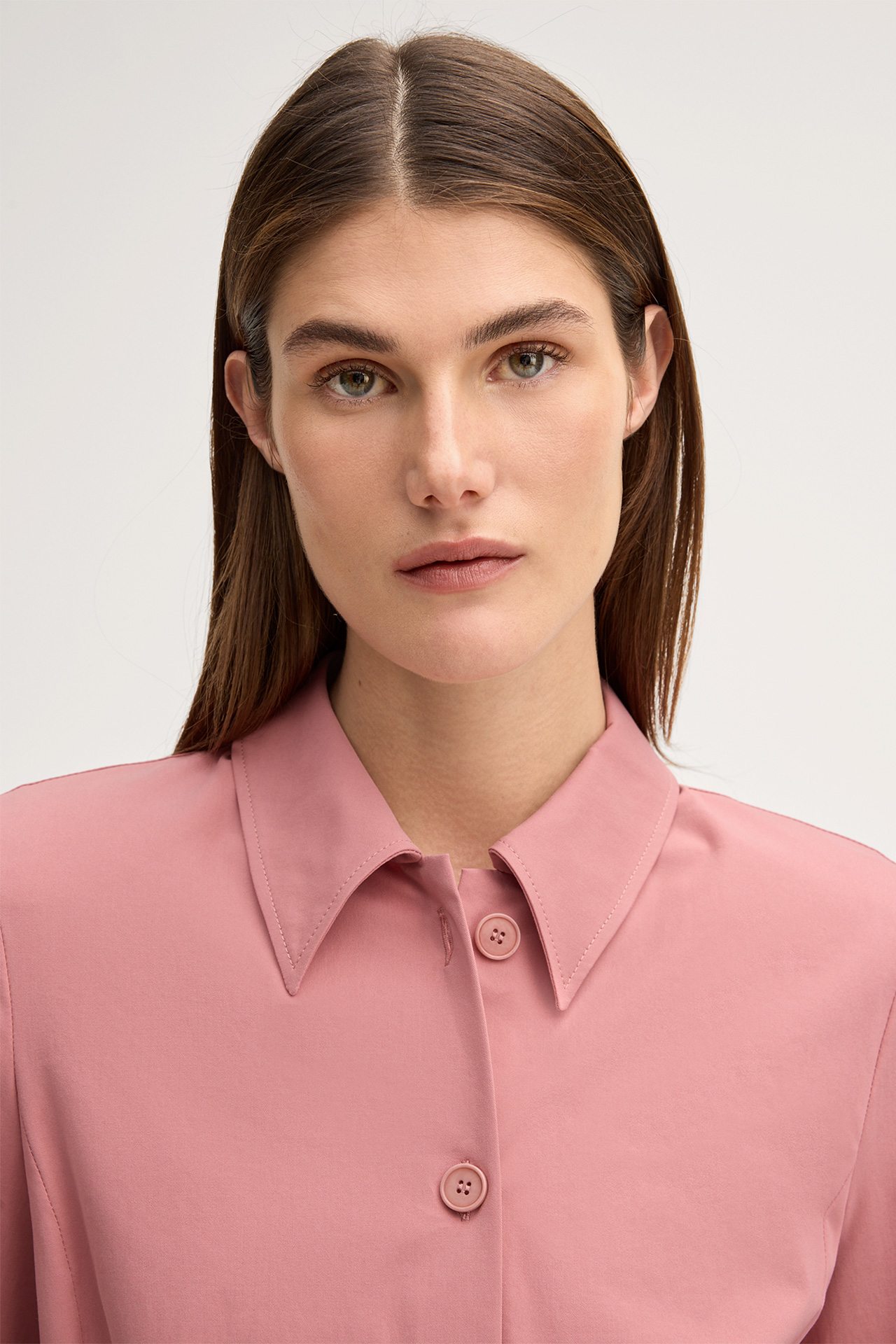 Baumwollstretch-Gabardine-Hemdbluse mit Gürtel in Rosa