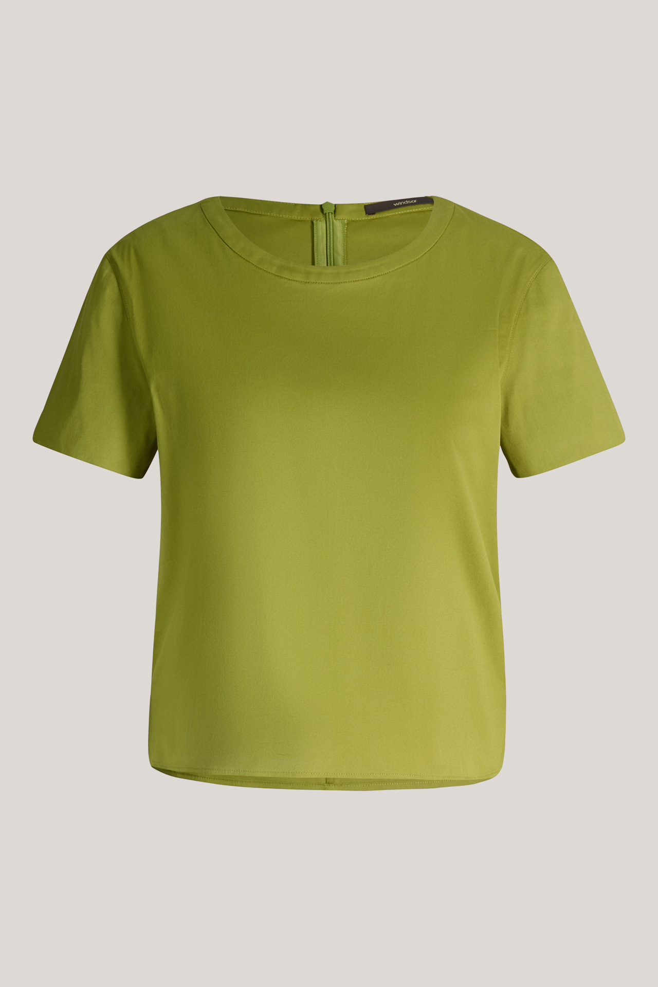 Baumwollstretch-Kurzarm-Bluse in Grün