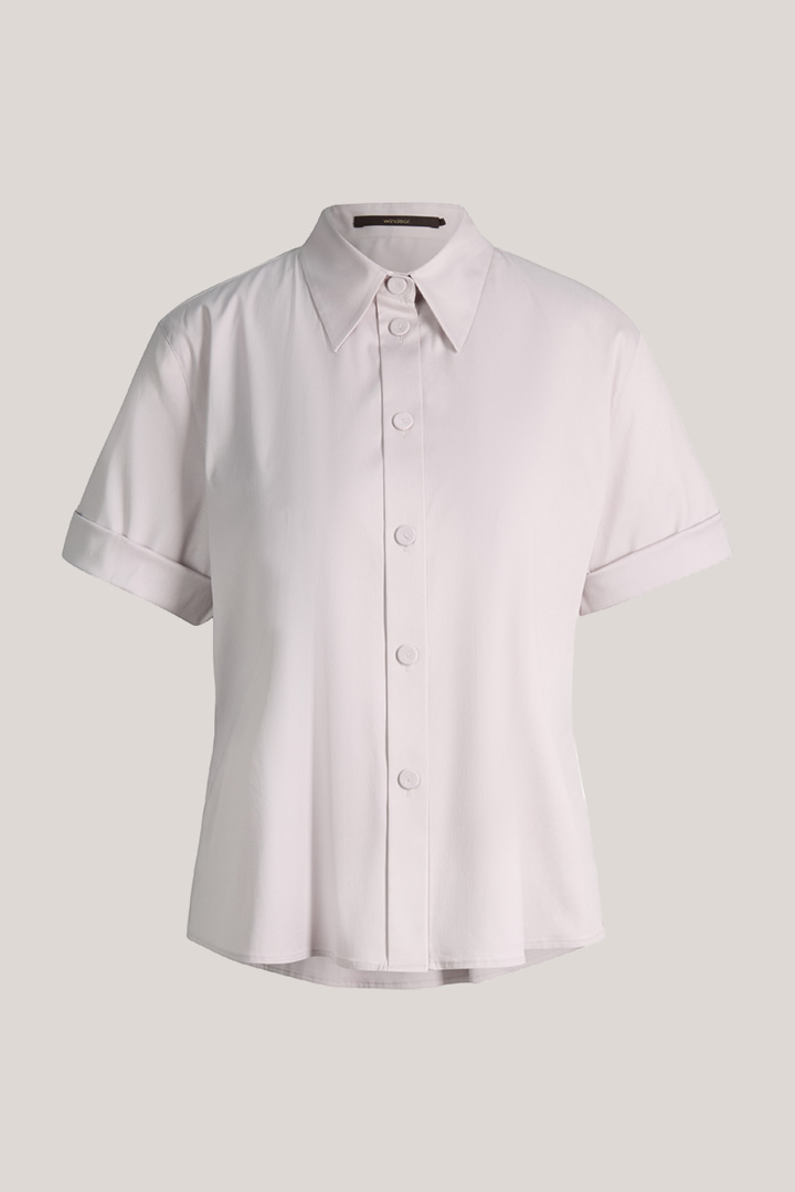 Baumwollstretch-Kurzarm-Hemdbluse in Beige