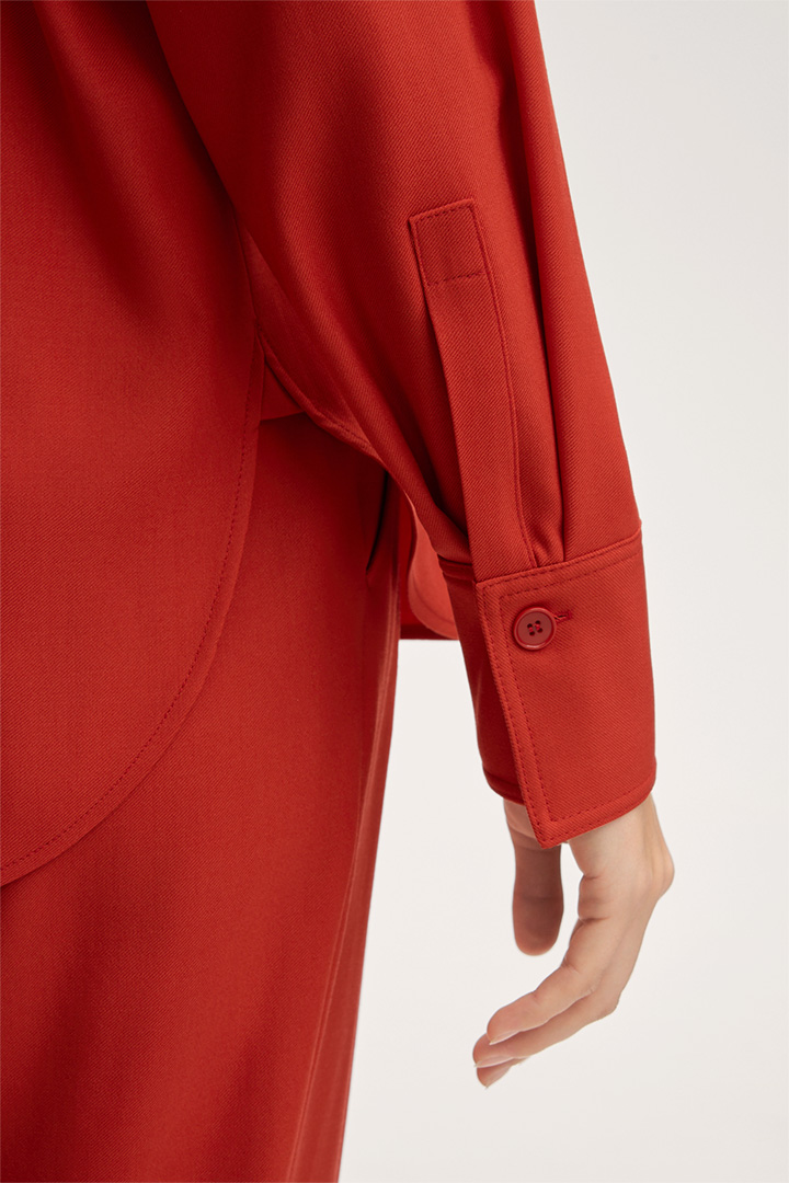 Schurwollstretch-Twill-Hemdbluse in Rot