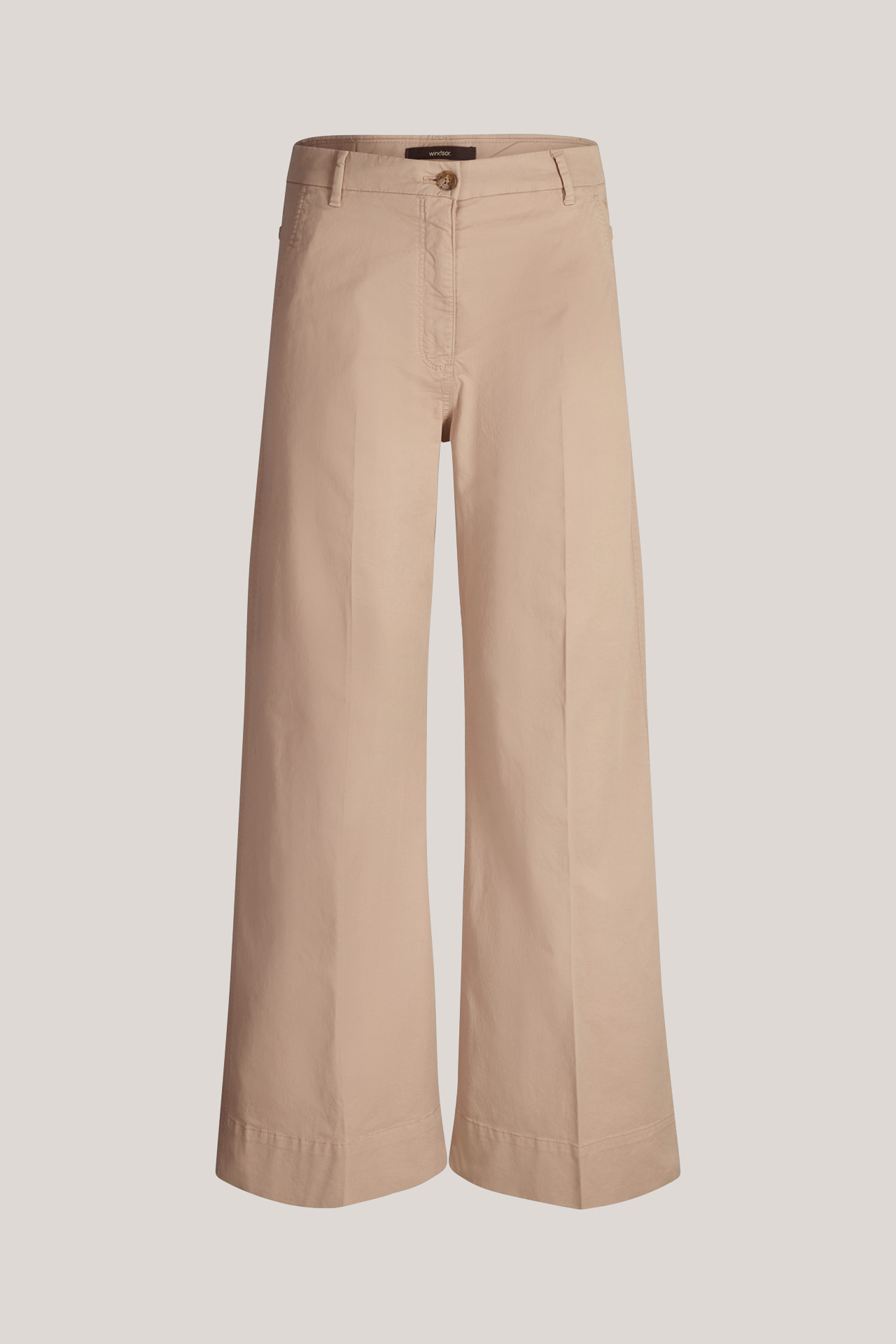 Stretchige Baumwolle zeichnet die Palazzo-Hose als komfortables Piece aus. Das Design heben der klassische Bund mit Gürtelschlaufen und die Schließe aus Knopf und Zipper hervor, ergänzt durch aufgesetzte Gesäßtaschen. Bügelfalten akzentuieren das Item.