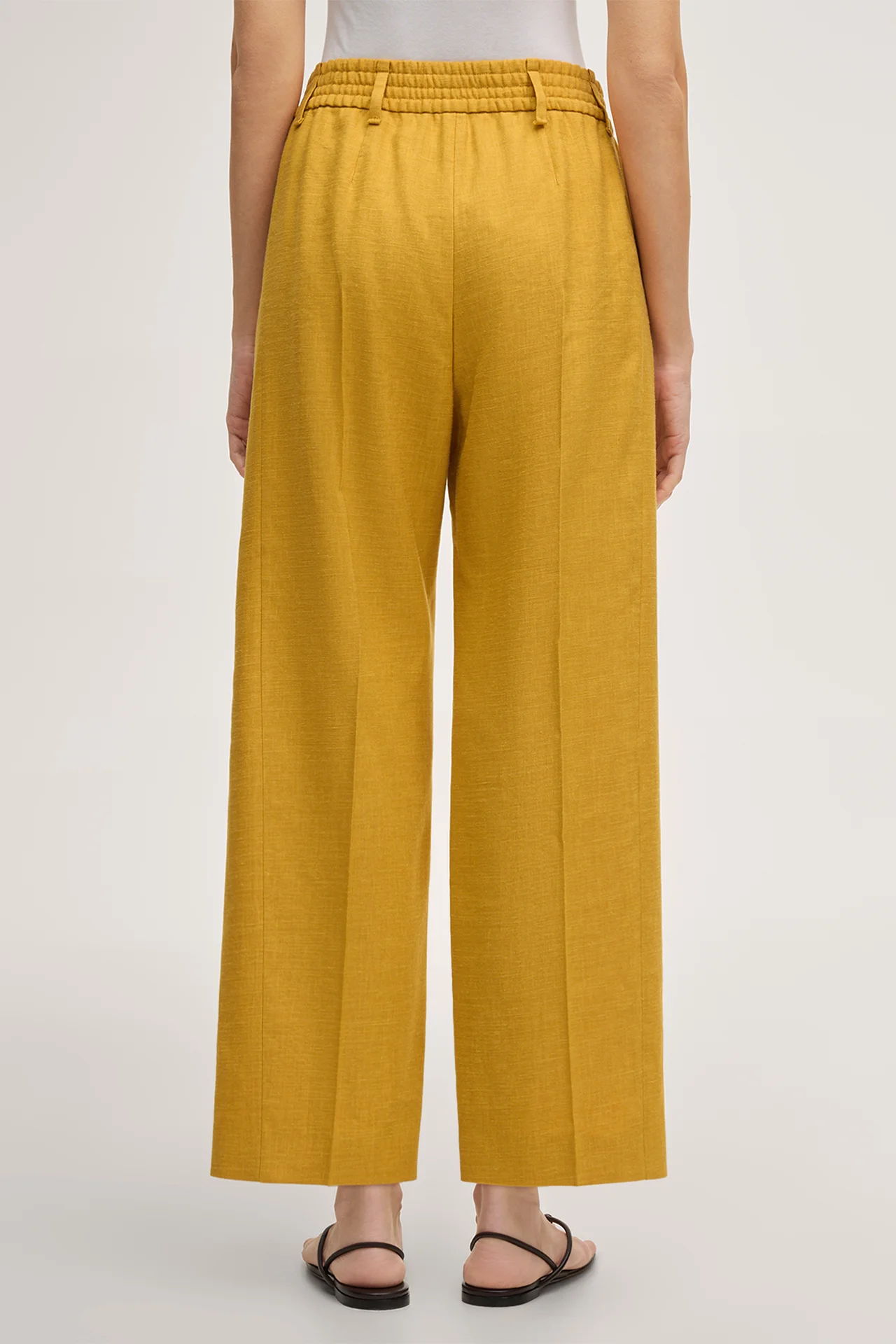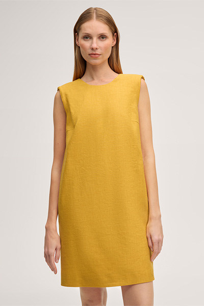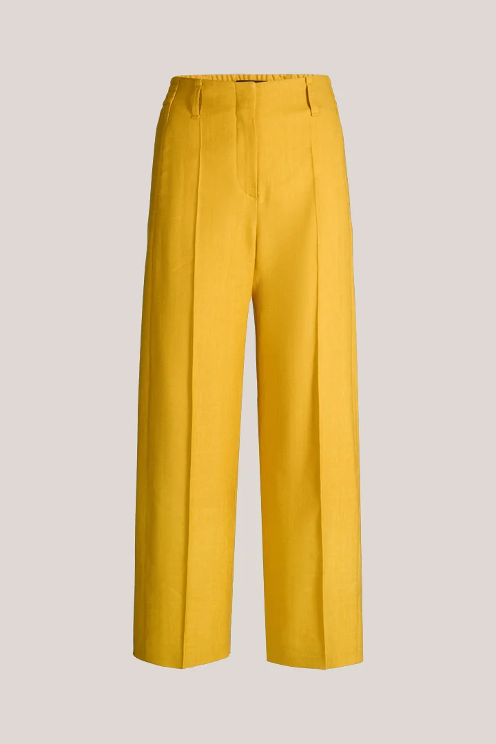 Leinenstretch-Bundfaltenhose in Gelb