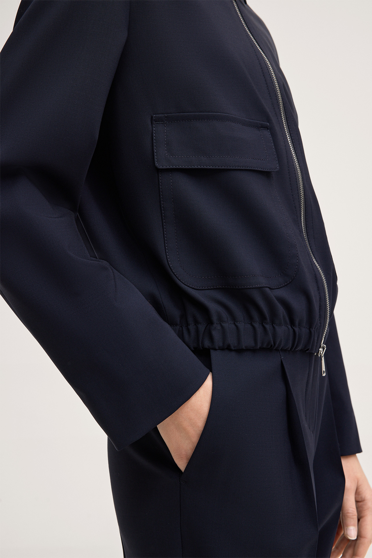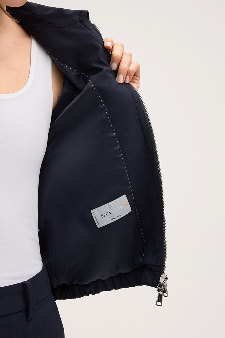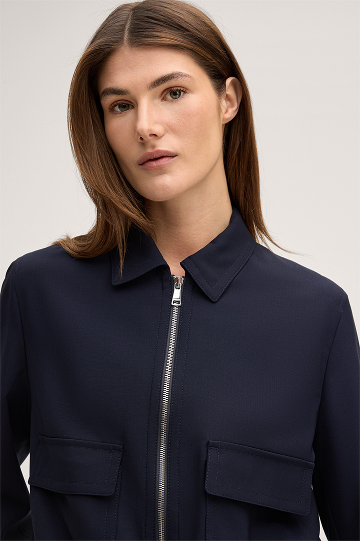 Schurwollstretch-Blouson mit Zipper in Navy