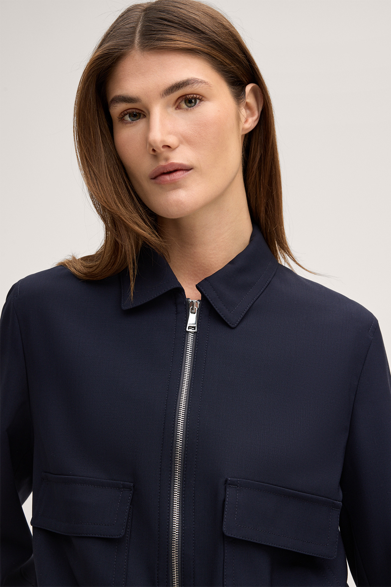 Der Blouson begeistert in komfortabler Qualität aus stretchiger Schurwolle als stilvolle Ergänzung variabler Looks – entspannt zum Duo aus Shirt und Jeans oder in raffinierter Kombination mit dem Etuikleid. Aufgesetzte Pattentaschen und der Zwei-Wege-Zipper versprühen modernes Flair. Klassische Details wie der Umlegekragen sorgen für den eleganten Twist. Ein harmonisches Finish bietet der Saumabschluss im elastischen Design.