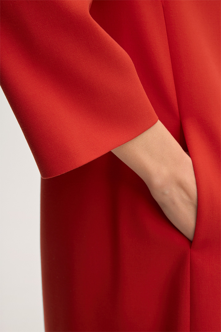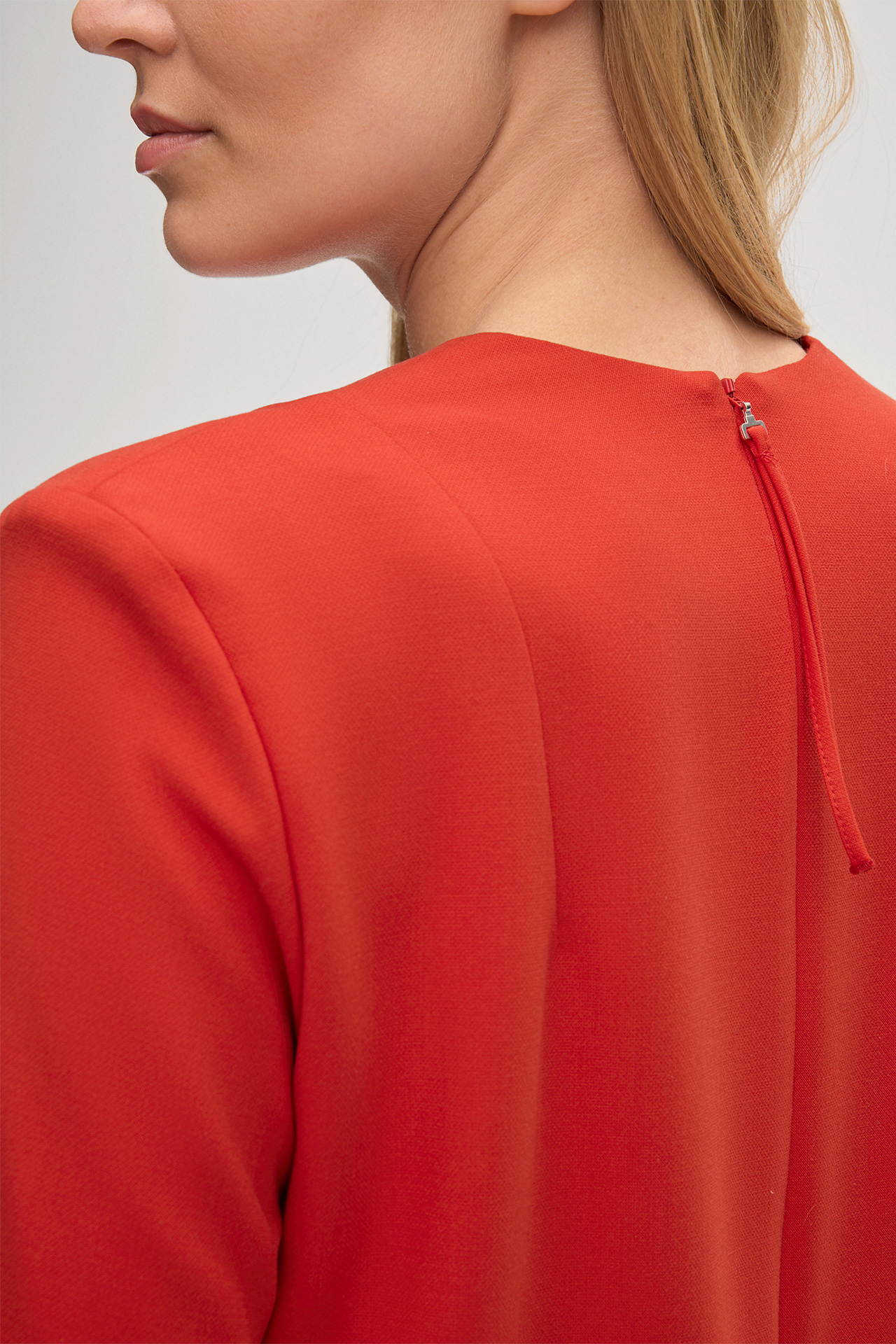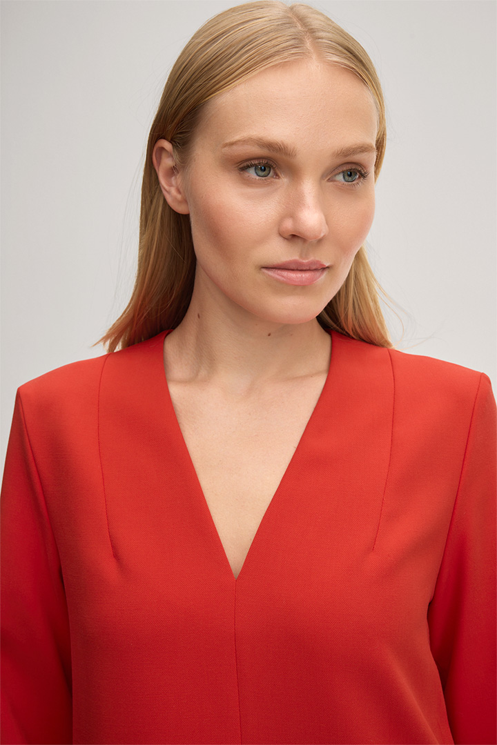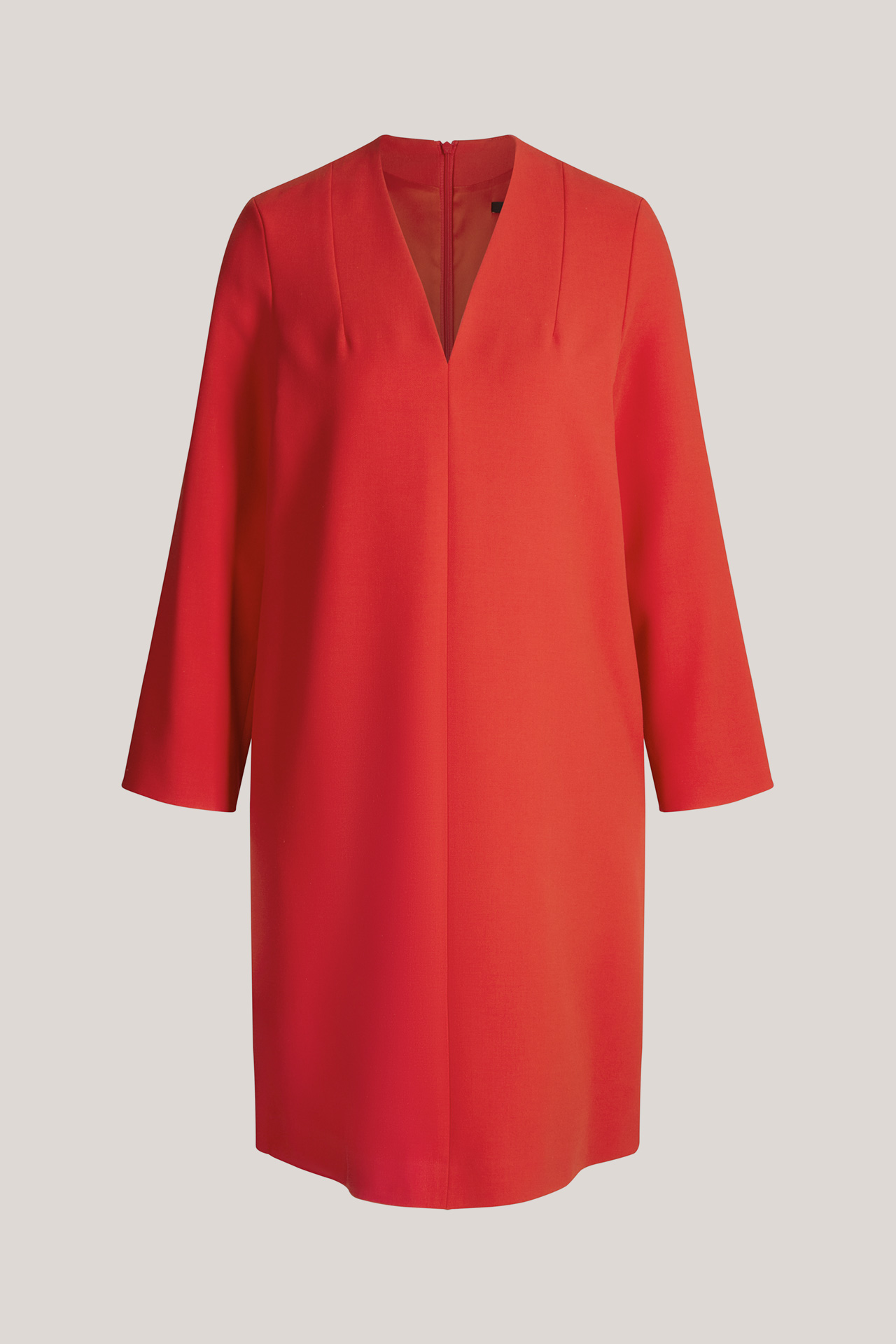 In Crêpe-Qualität aus stretchiger Tech-Viskose überzeugt das Shift-Kleid in klassischer A-Linie. Für den femininen Look sorgt der V-Ausschnitt, während cleane Abschlüsse einen modernen Twist bieten. Nahtverdeckte Taschen sowie der rückseitige Zipper runden den Style harmonisch ab.