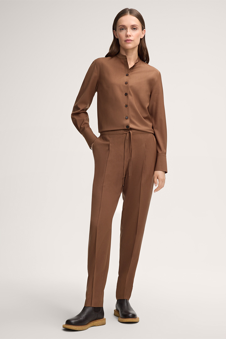 Das Etuikleid erweist sich in Tweed-Qualität in stretchiger italienischer Wollmischung als stilvolles Piece. Angeschnittene Ärmel und der V-Ausschnitt heben das Design hervor, ergänzt durch den Saumabschluss mit rückseitigem Cut-Out. Der nahtverdeckte Zipper mit schmalem Zugband rundet den Style stimmig ab.