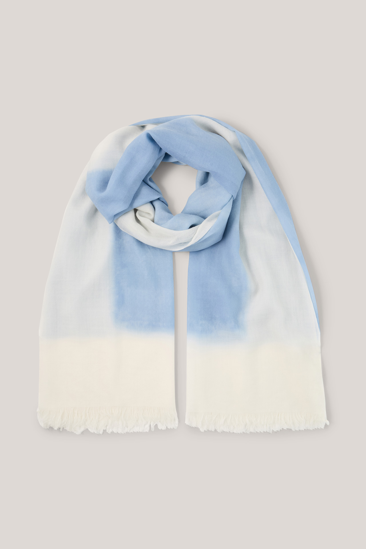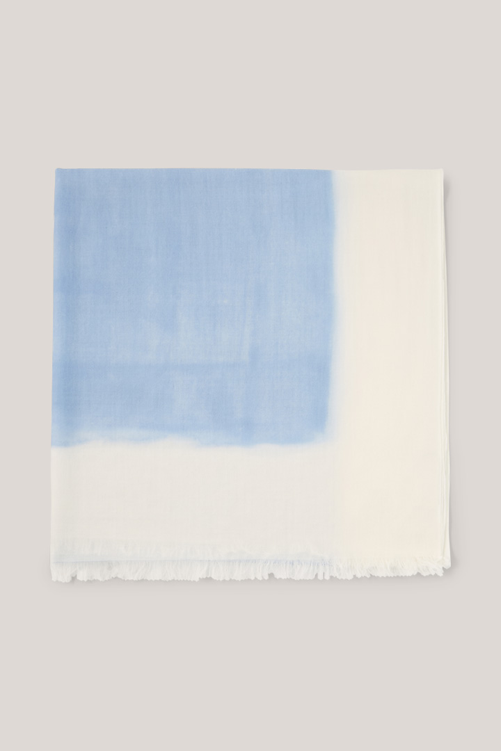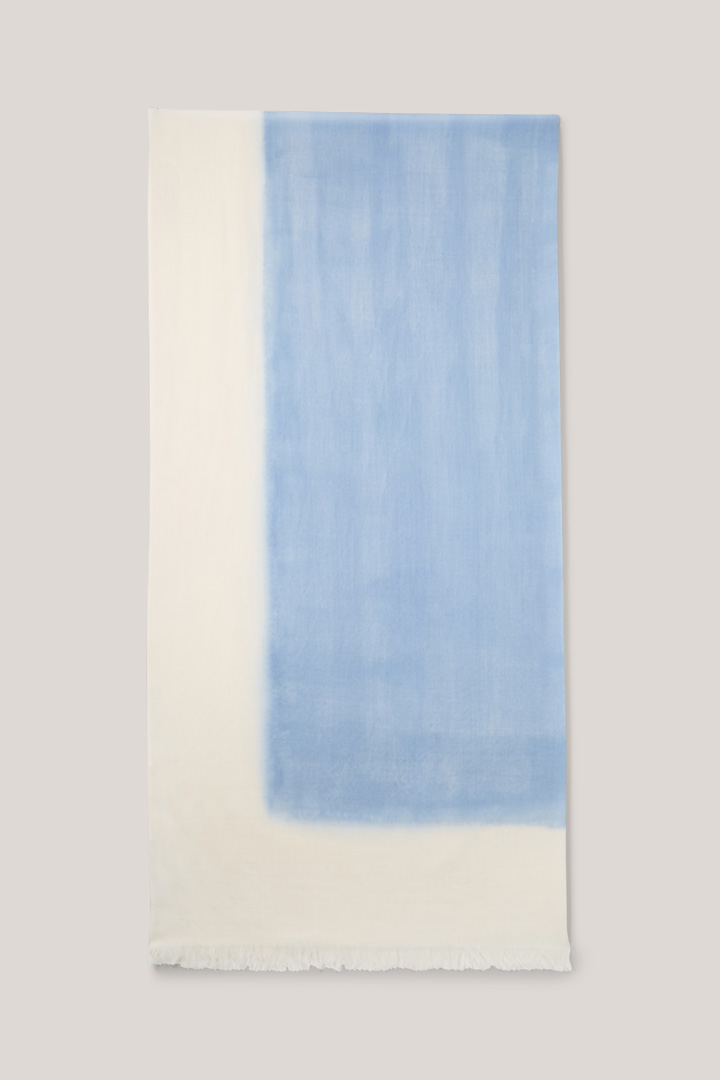 Schurwoll-Schal mit Farbverlauf in Hellblau und Ecru