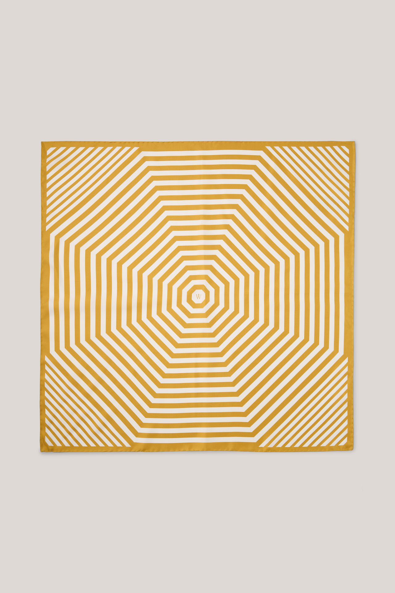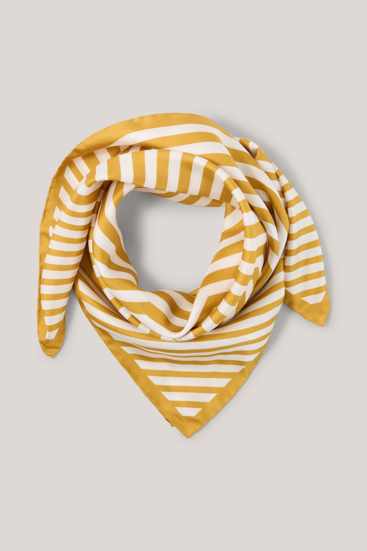 Das geometrische Streifen-Muster zeichnet den raffinierten Look aus und macht das Seidentuch zum Lieblingsaccessoire. Als Stilkombinationen passen Hemdblusenkleider und Shirt-Jeans-Varianten, selbstverständlich wirkt das Tuch zu sommerlichen Capri-Shorts. Rollierte Kanten und die Verarbeitung aus reiner Seide bringen die luxuriöse Note zur Geltung und runden das Essential ab.