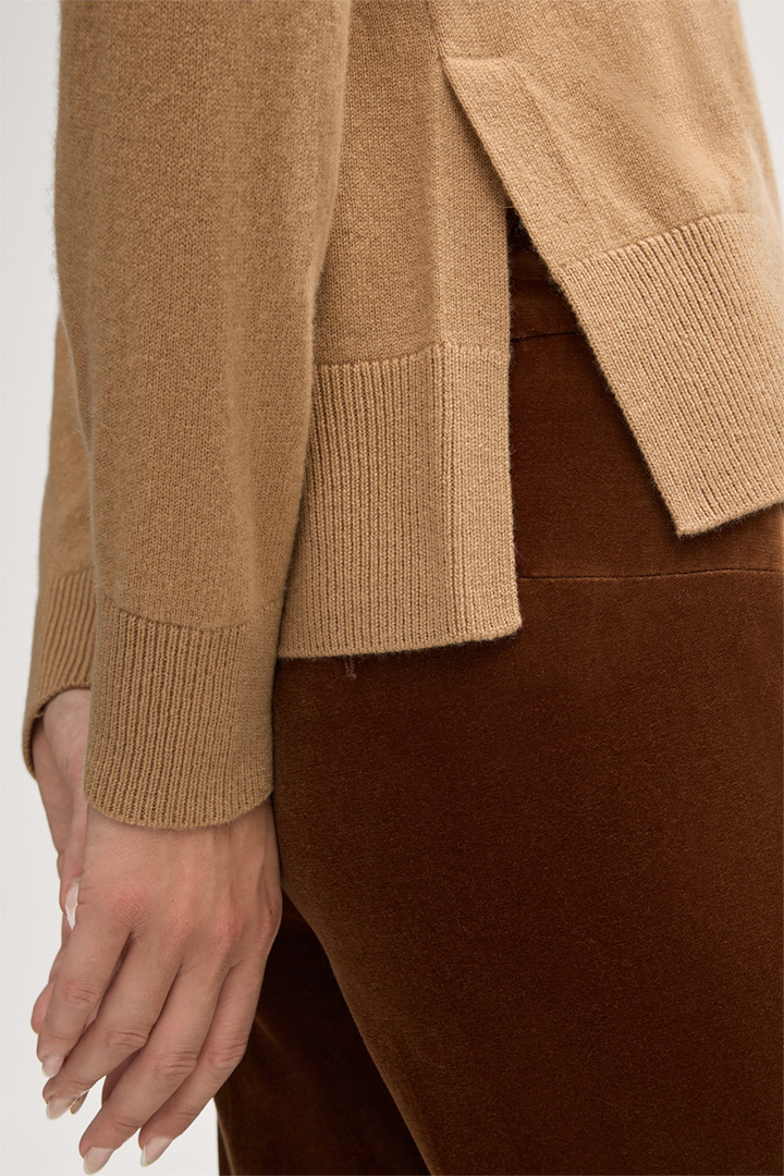 Pures Cashmere zeichnet den Pullover als Allrounder mit luxuriösem Twist aus, passend zu Jeans, variablen Hosen-Styles und Röcken. Moderne Akzente verleihen Raglanärmel, gerippte Bündchen und der rückseitig verlängerte Saum – gehighlightet durch Seitenschlitze. Feminines Finish: der klassische Rundhalsausschnitt.