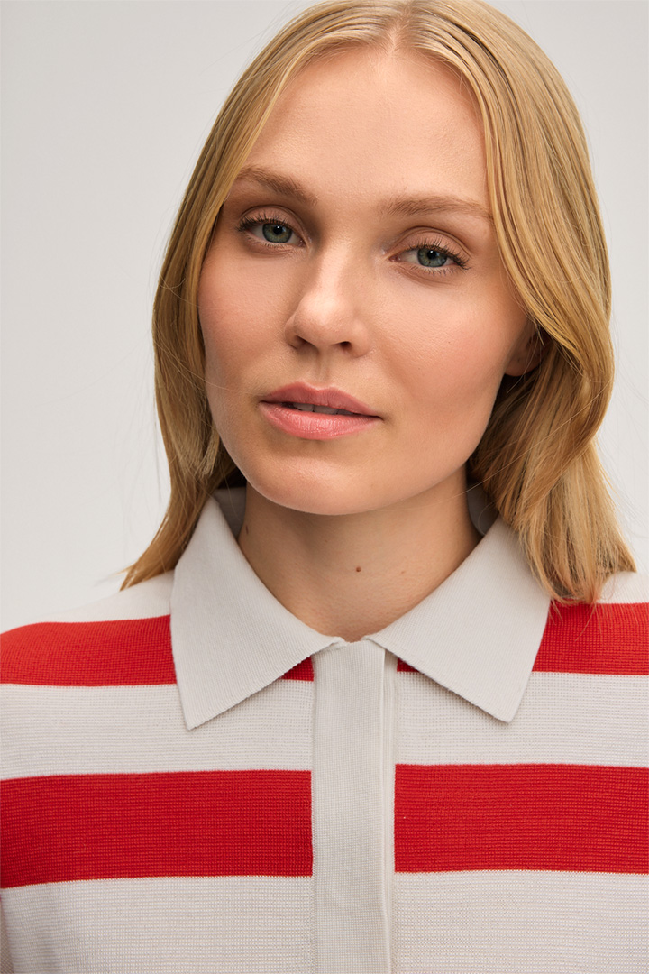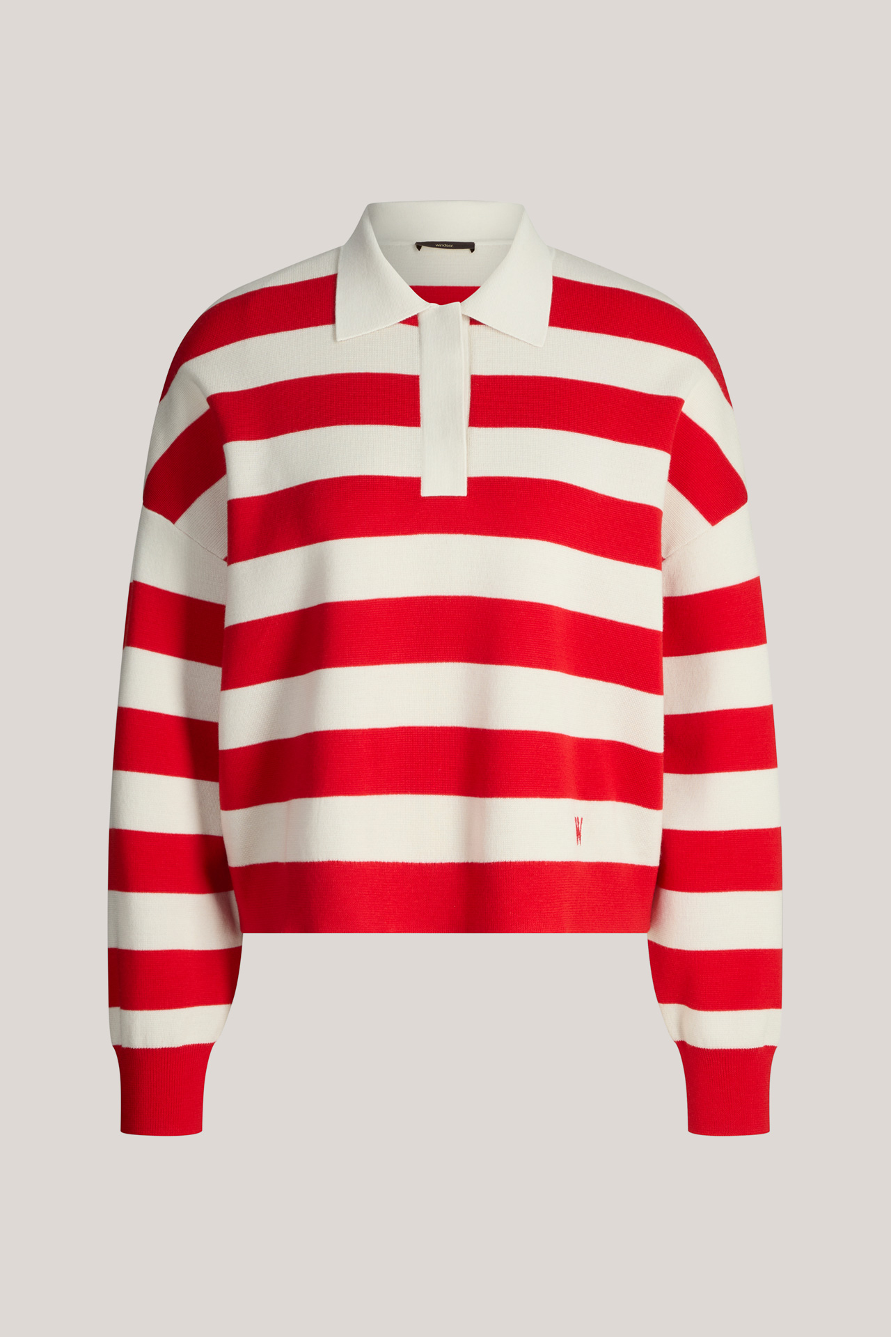 Merino-Strick-Polo-Shirt in Rot-Ecru gestreift
