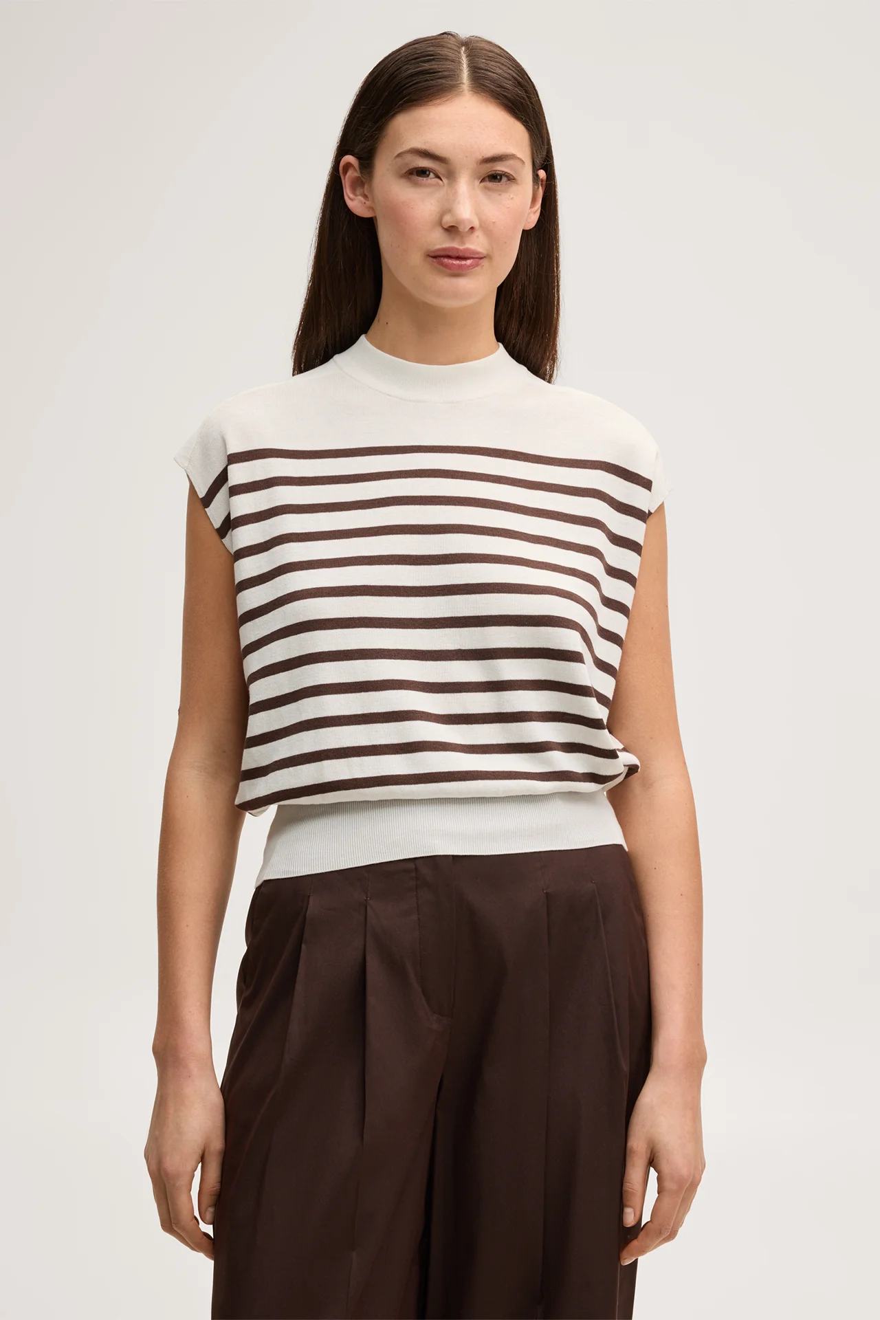 windsor. präsentiert das Produkt Seiden-Baumwollmix-Strick-Shirt in Ecru-Dunkelbraun aus der Kategorie Strick