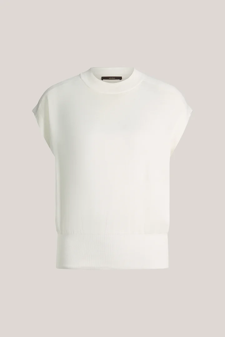 Seiden-Baumwollmix-Strick-Shirt in Ecru