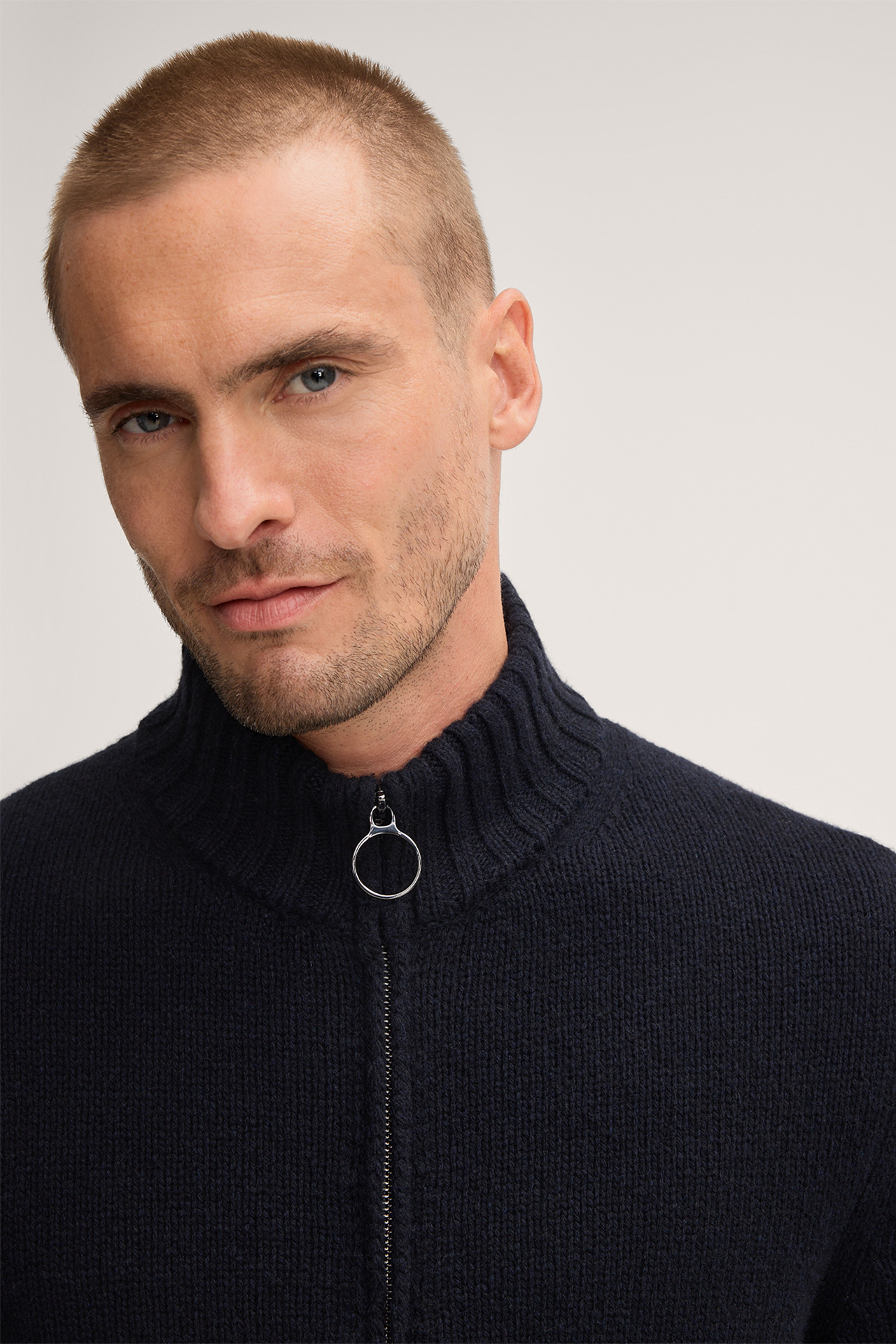 Cashmere-Strick-Jacke Ecosio mit Stehkragen in Navy